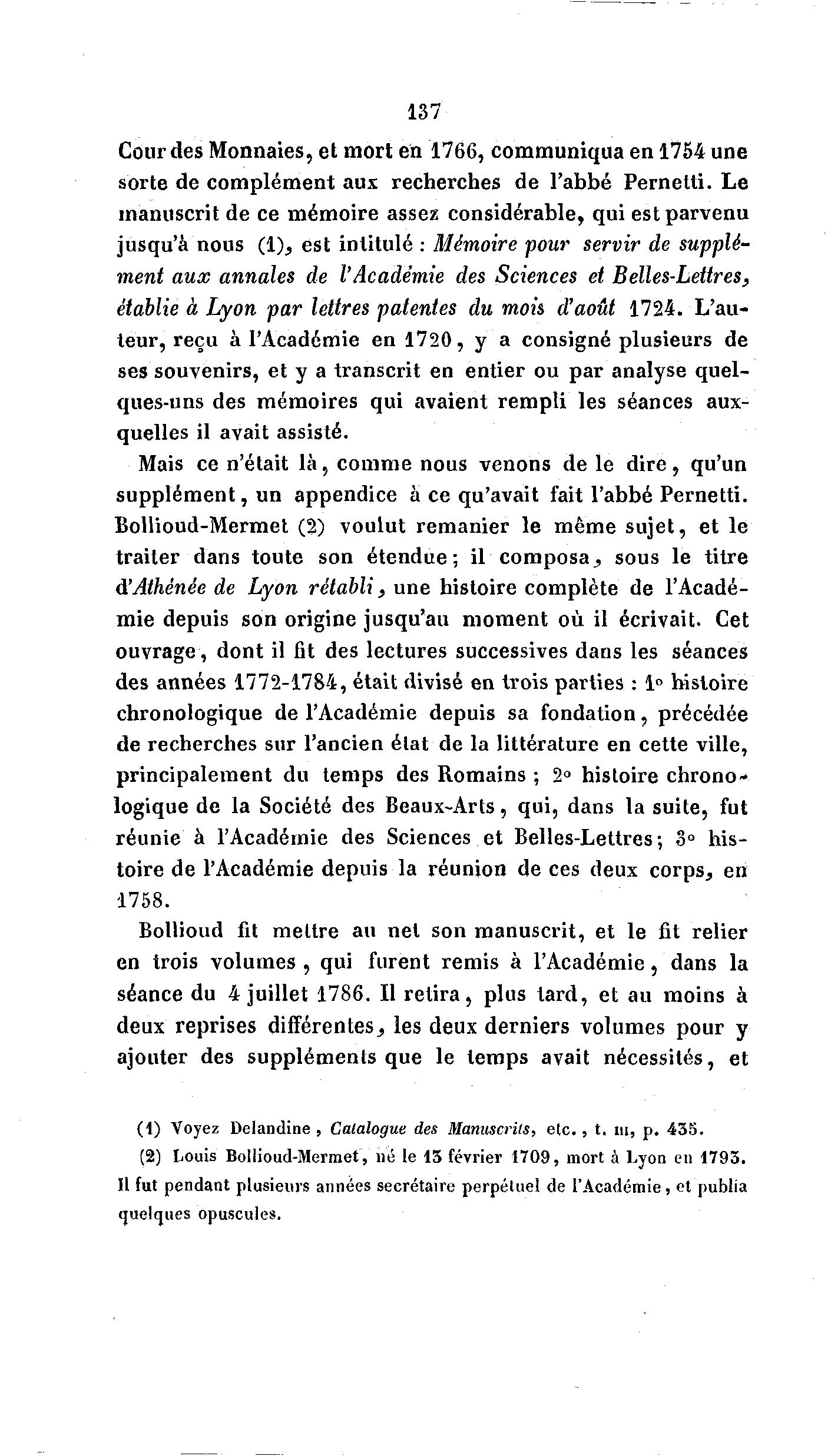 (2) Louis Bollioud-Mermet, né le 15 février 1709, mort à Lyon en 1793.