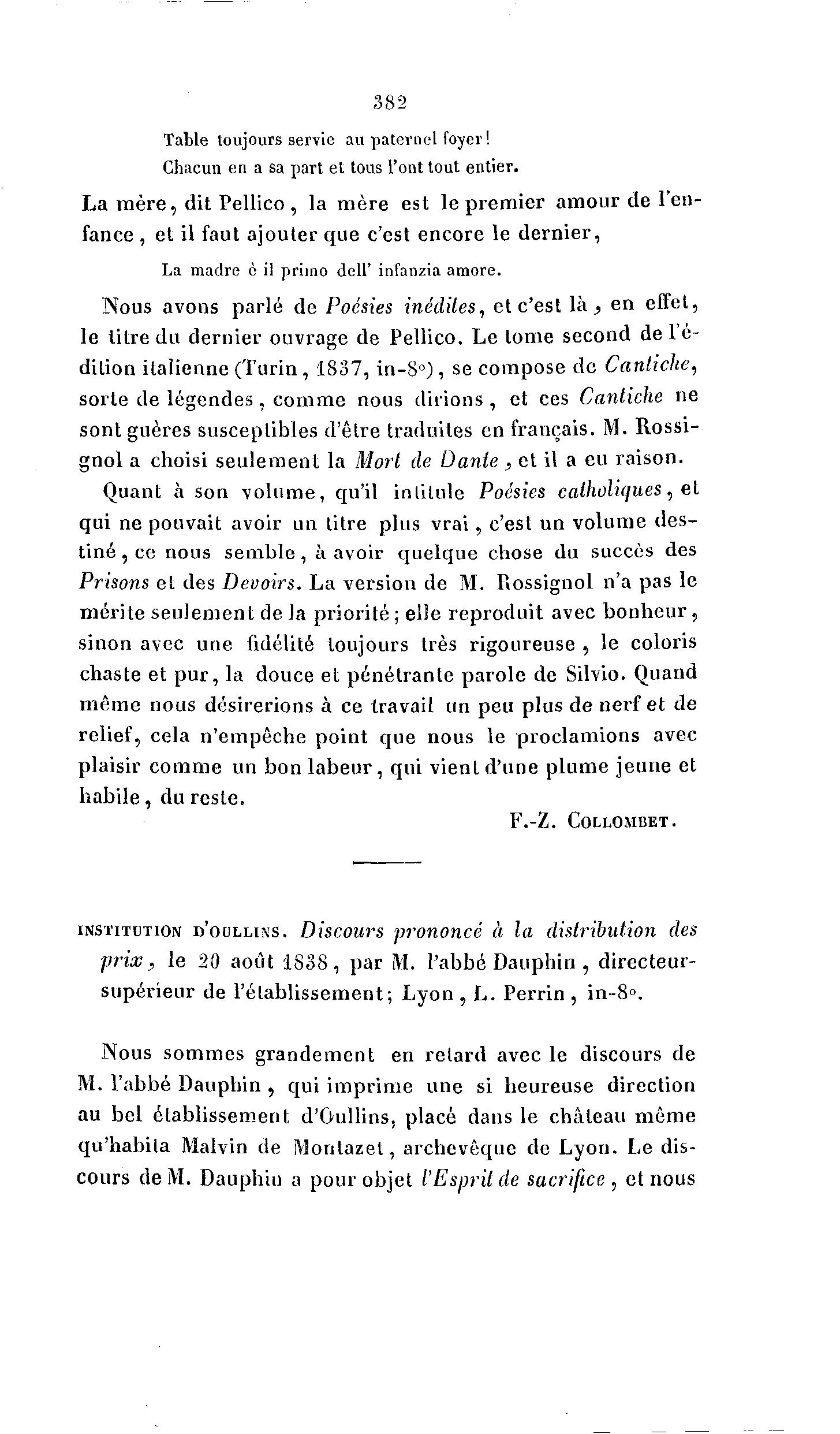 prix, le 20 août 1838, par M. l'abbé Dauphin , directeur-