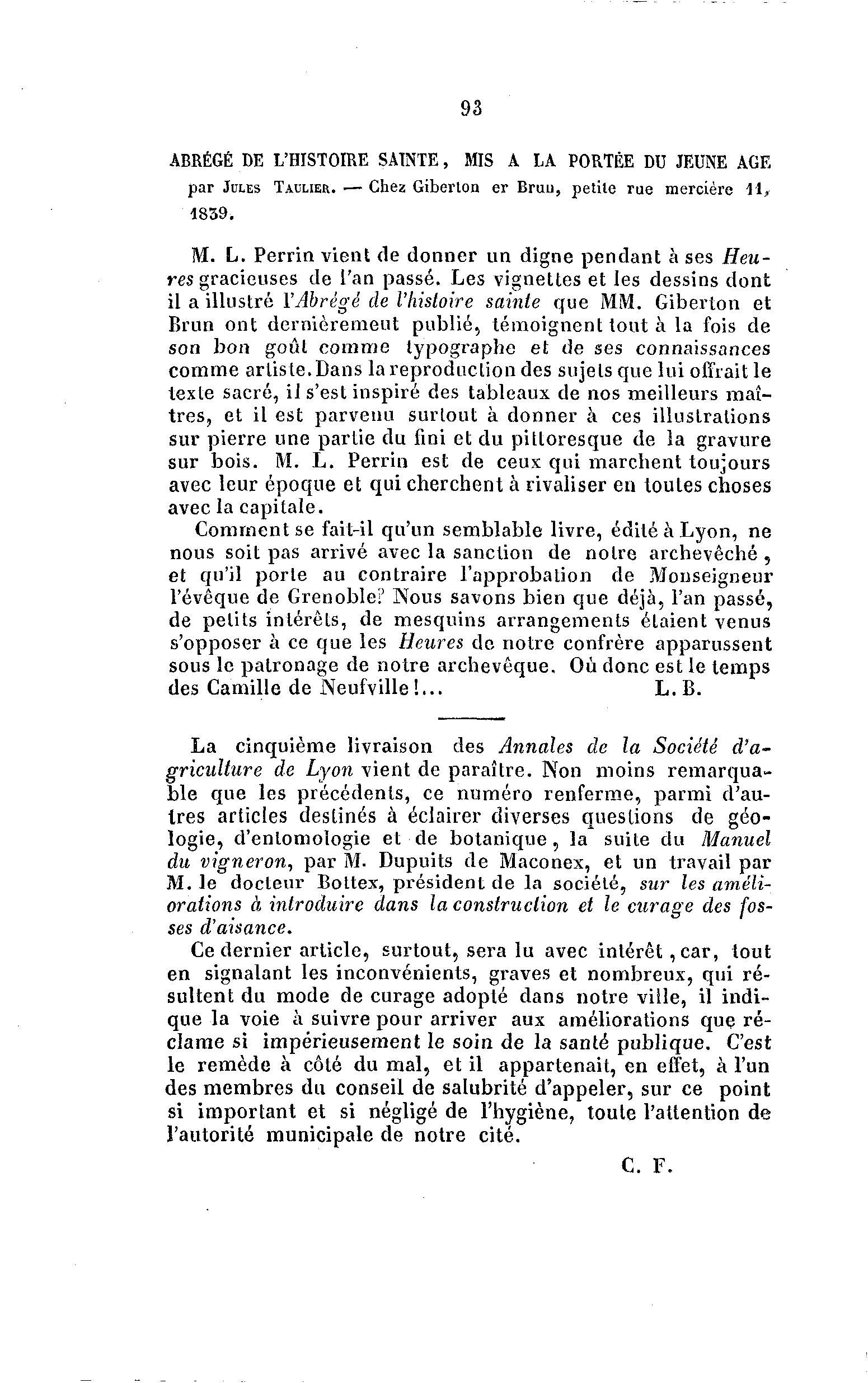 griculture de Lyon vient de paraître. Non moins remarqua-