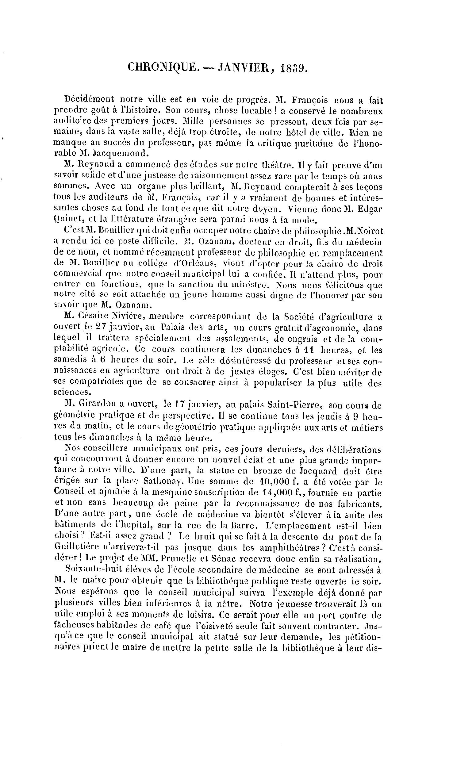 CHRONIQUE. — JANVIER, 1839.