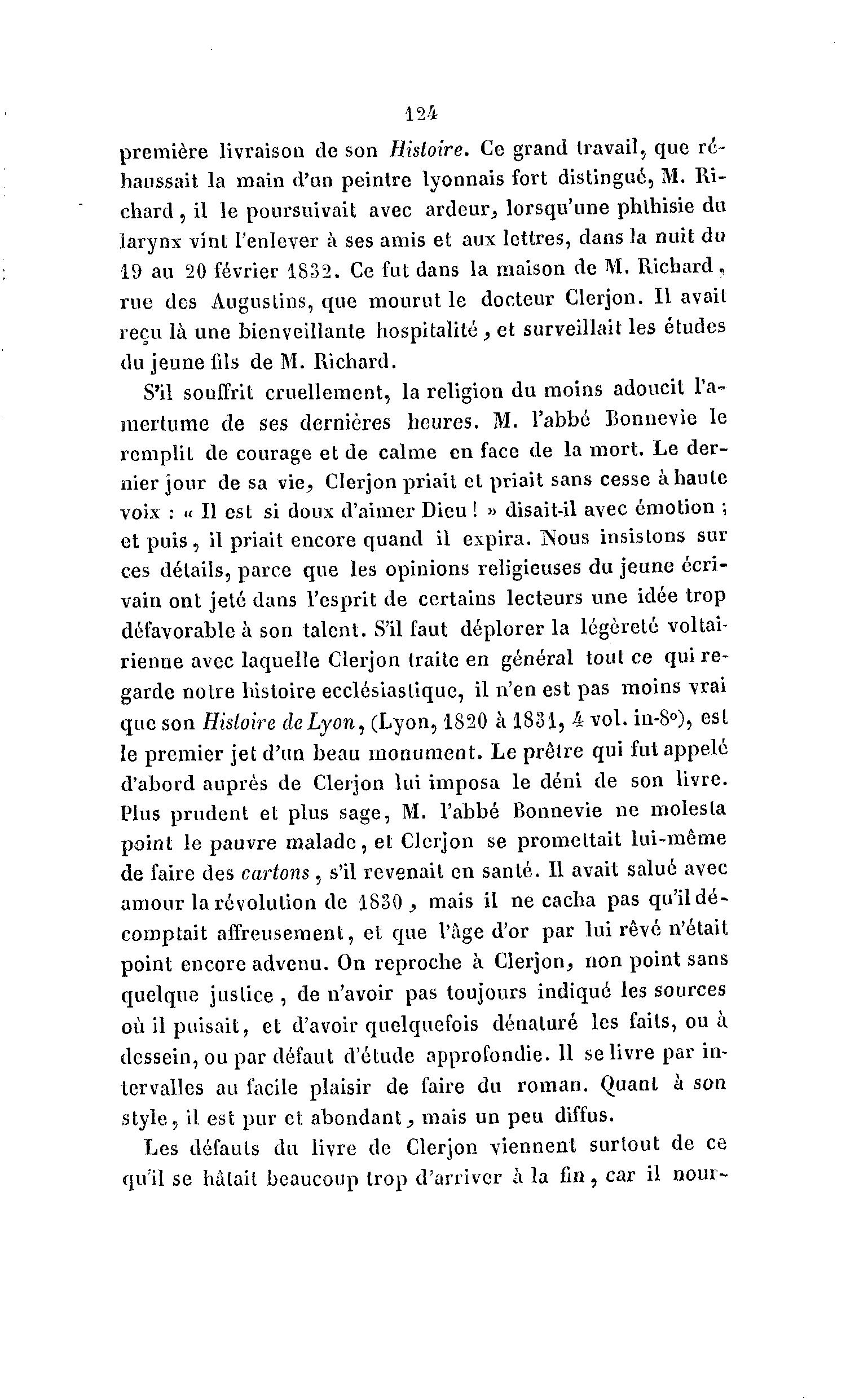 que son Histoire de Lyon, (Lyon, 1820 à 1831, 4 vol. in-8°), est