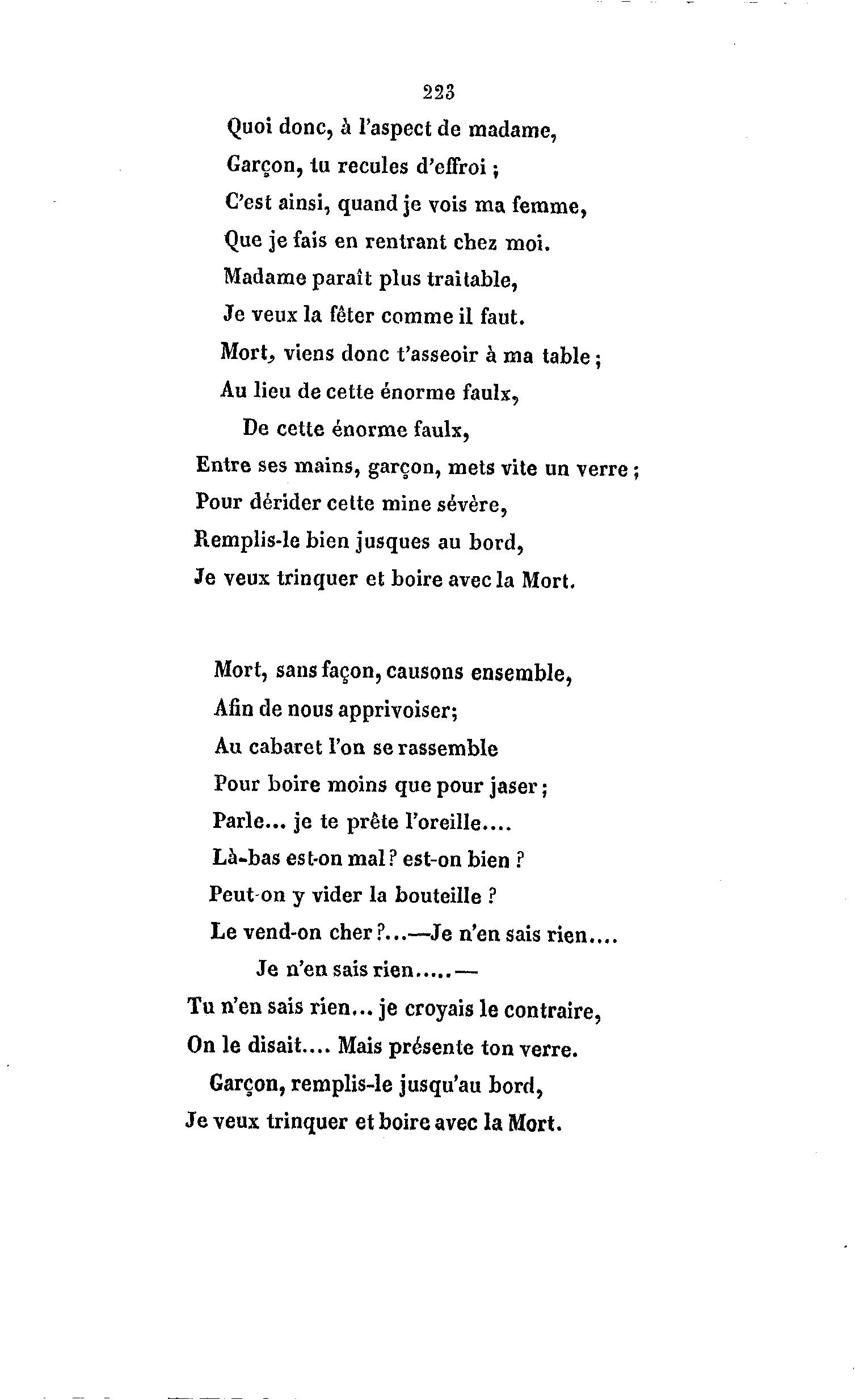 Je veux trinquer et boire avec la Mort.