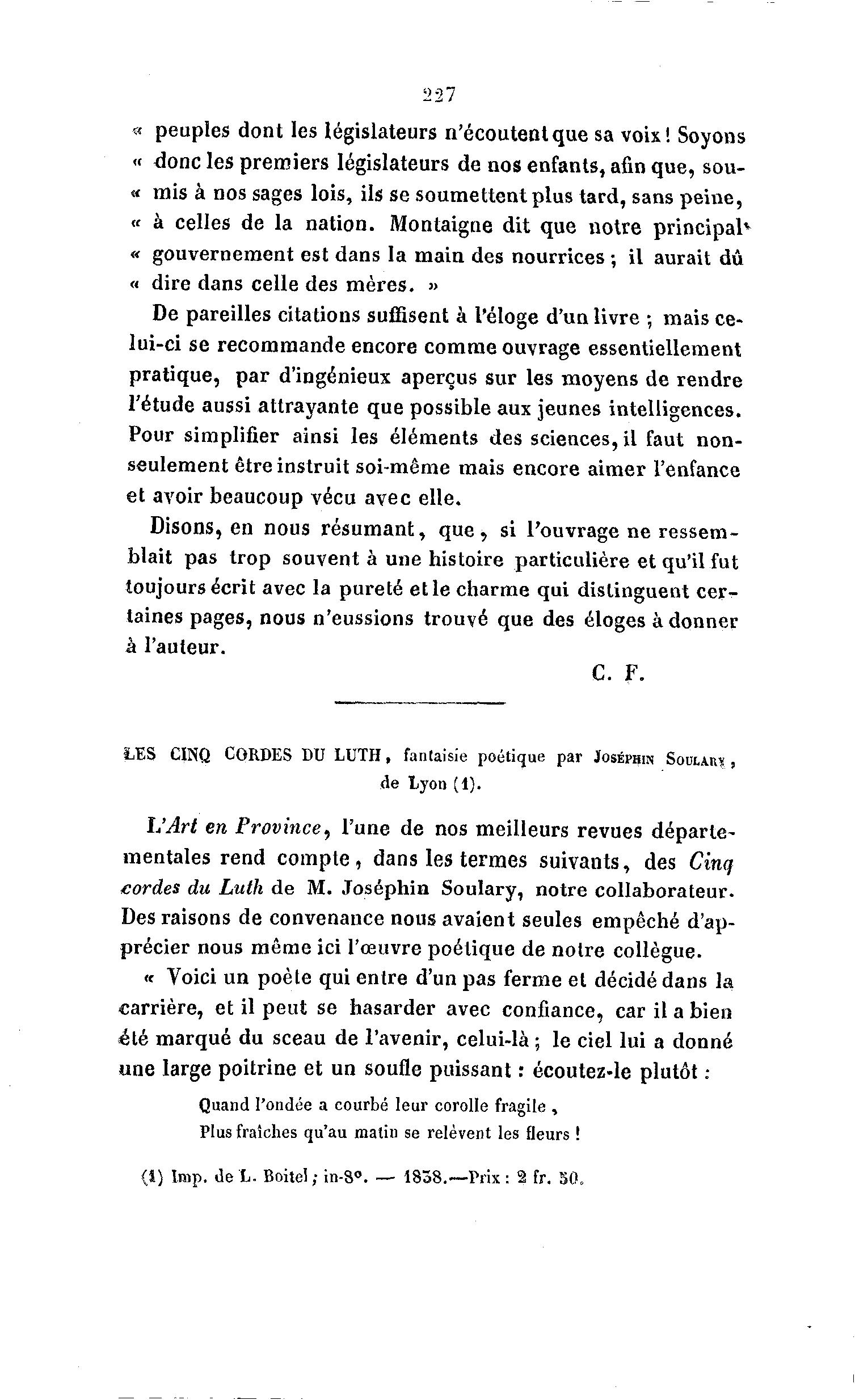 LES CINQ CORDES DU LUTH, fantaisie poétique par JOSÉPHIN SOULARI ,