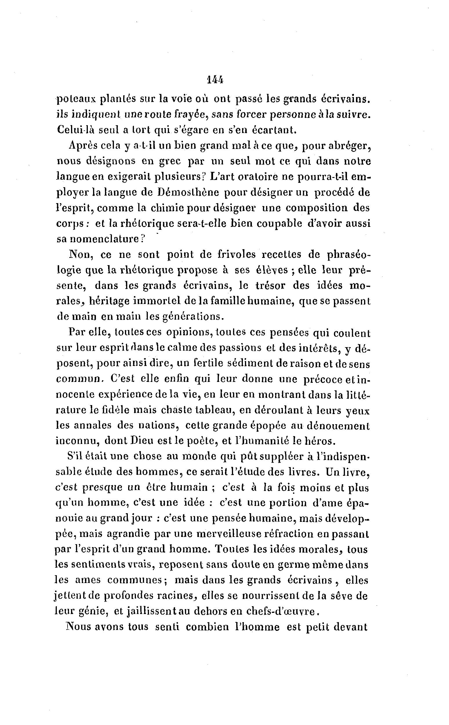 sente, dans les grands écrivains, le trésor des idées mo-