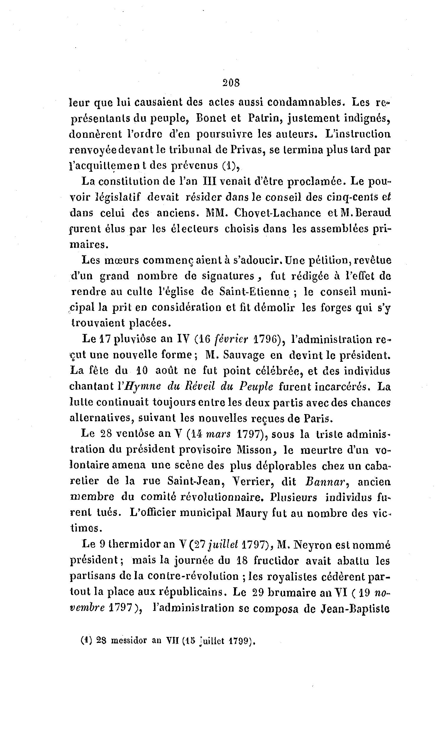 Le 9 thermidor an V (27 juillet 1797), M. Neyron est nommé