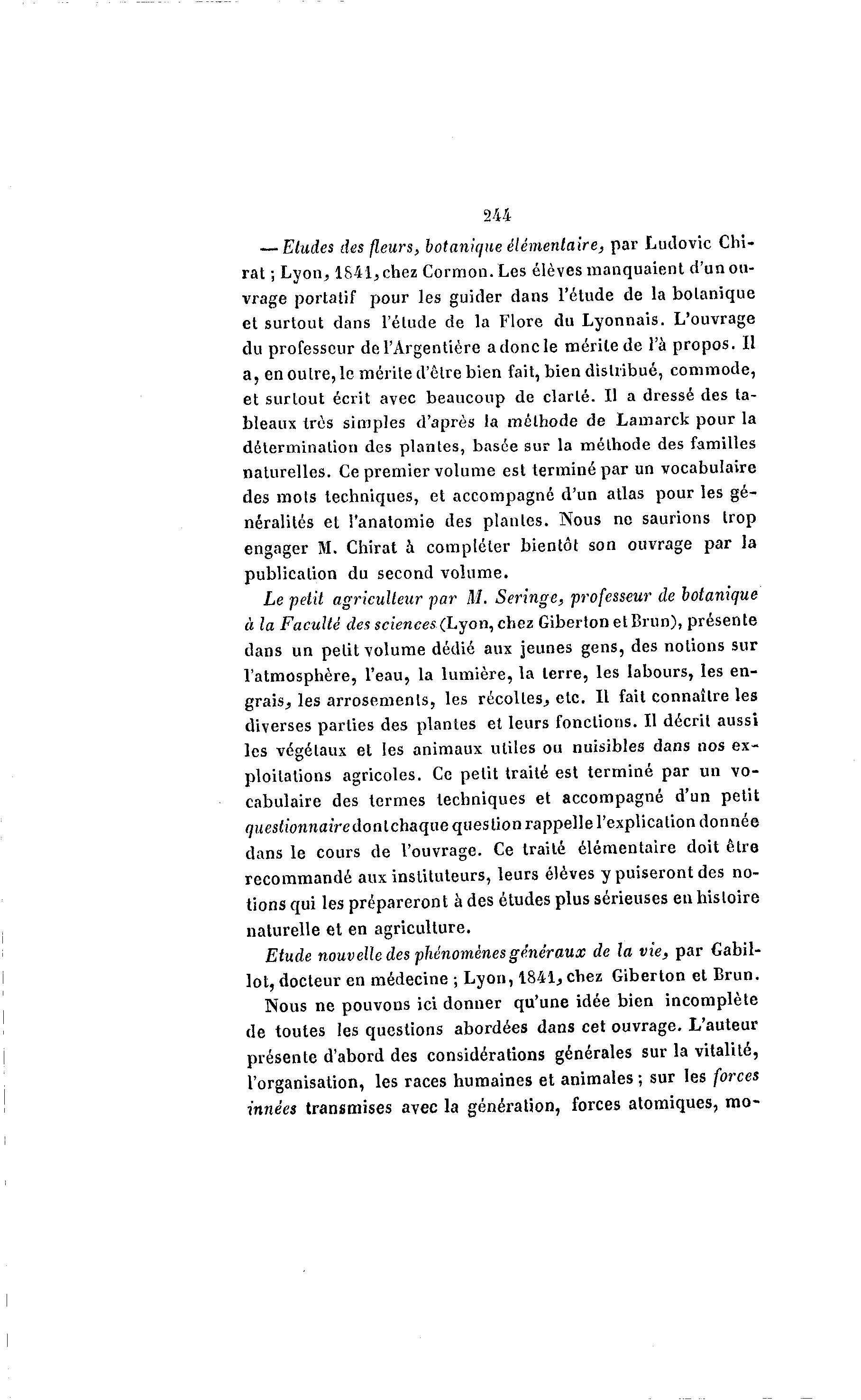 lot, docteur en médecine ; Lyon, 1841, chez Giberton et Brun.