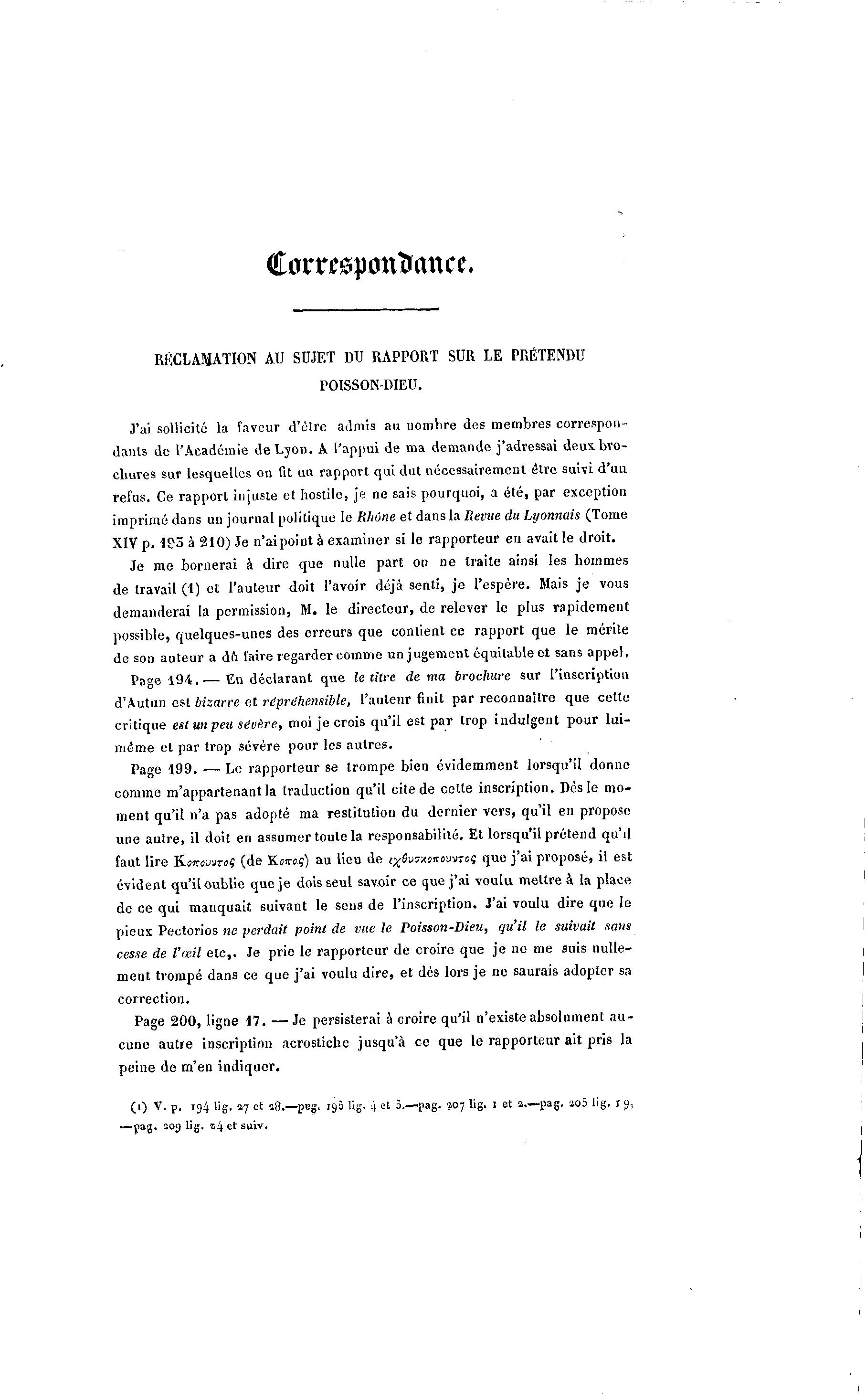 imprimé dans un journal politique le Rhône et dans la Revue du Lyonnais (Tome