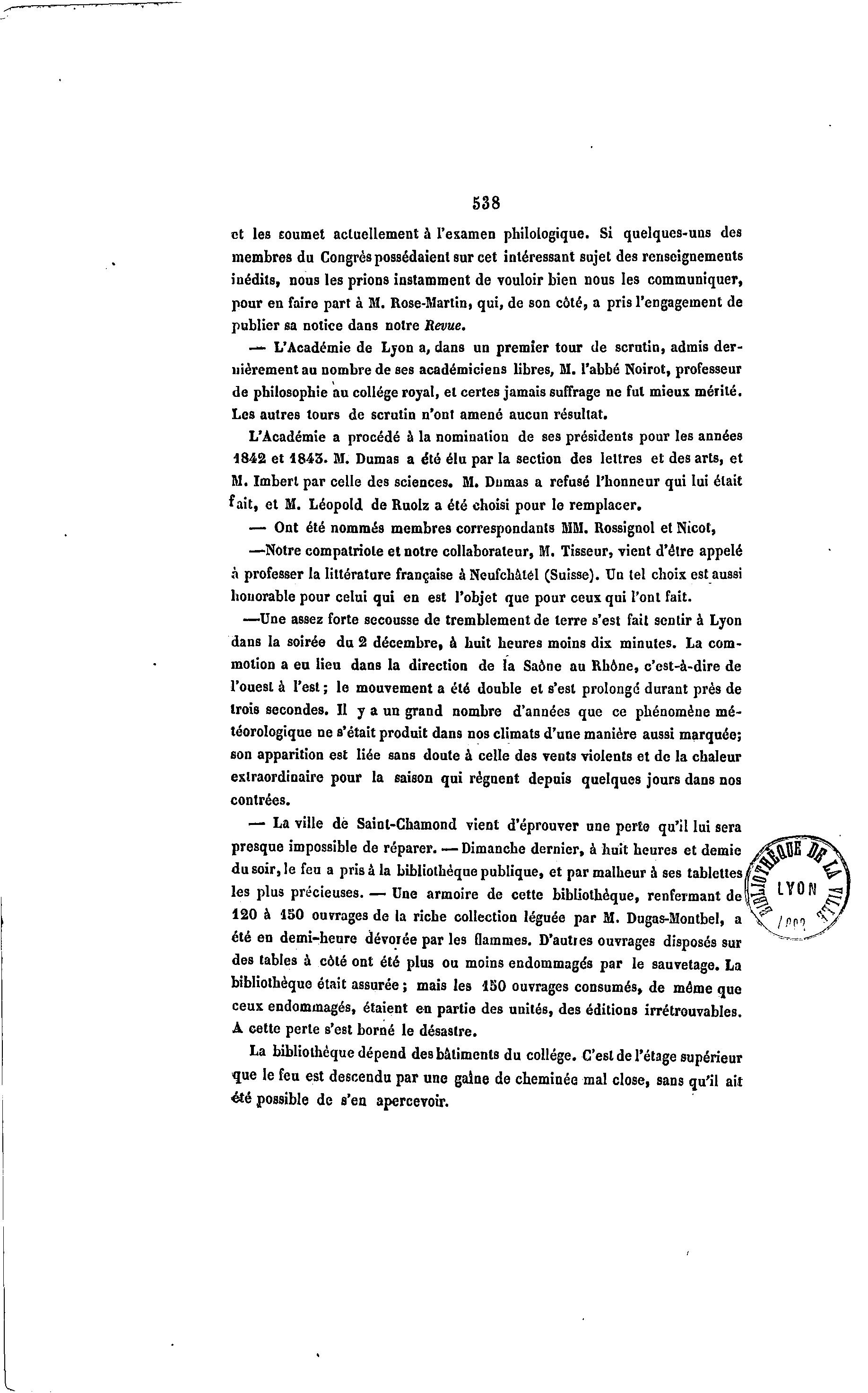 4842 et 1843. M. Dumas a été élu par la section des lettres et des arts, et