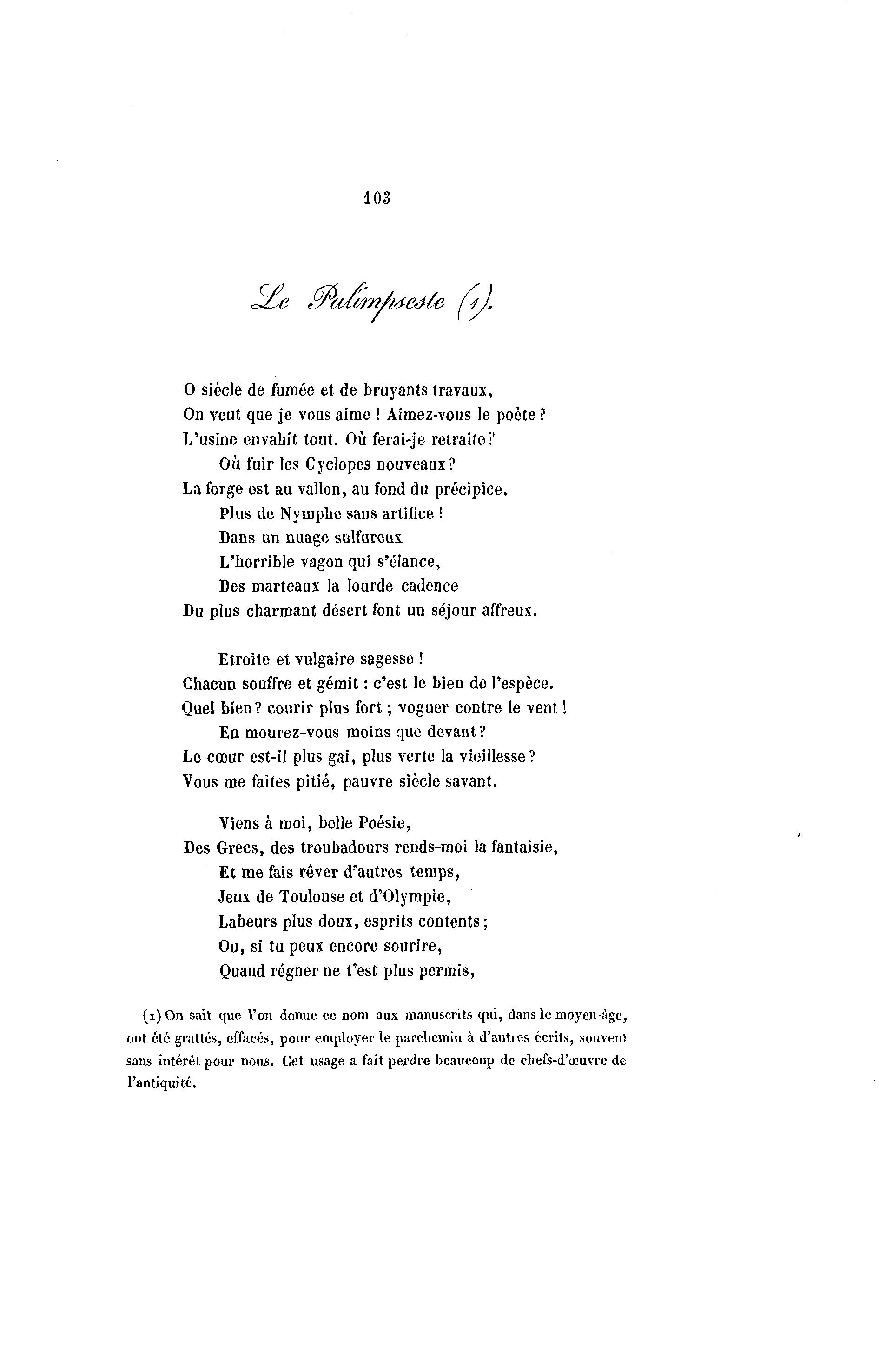 Des Grecs, des troubadours rends-moi la fantaisie,