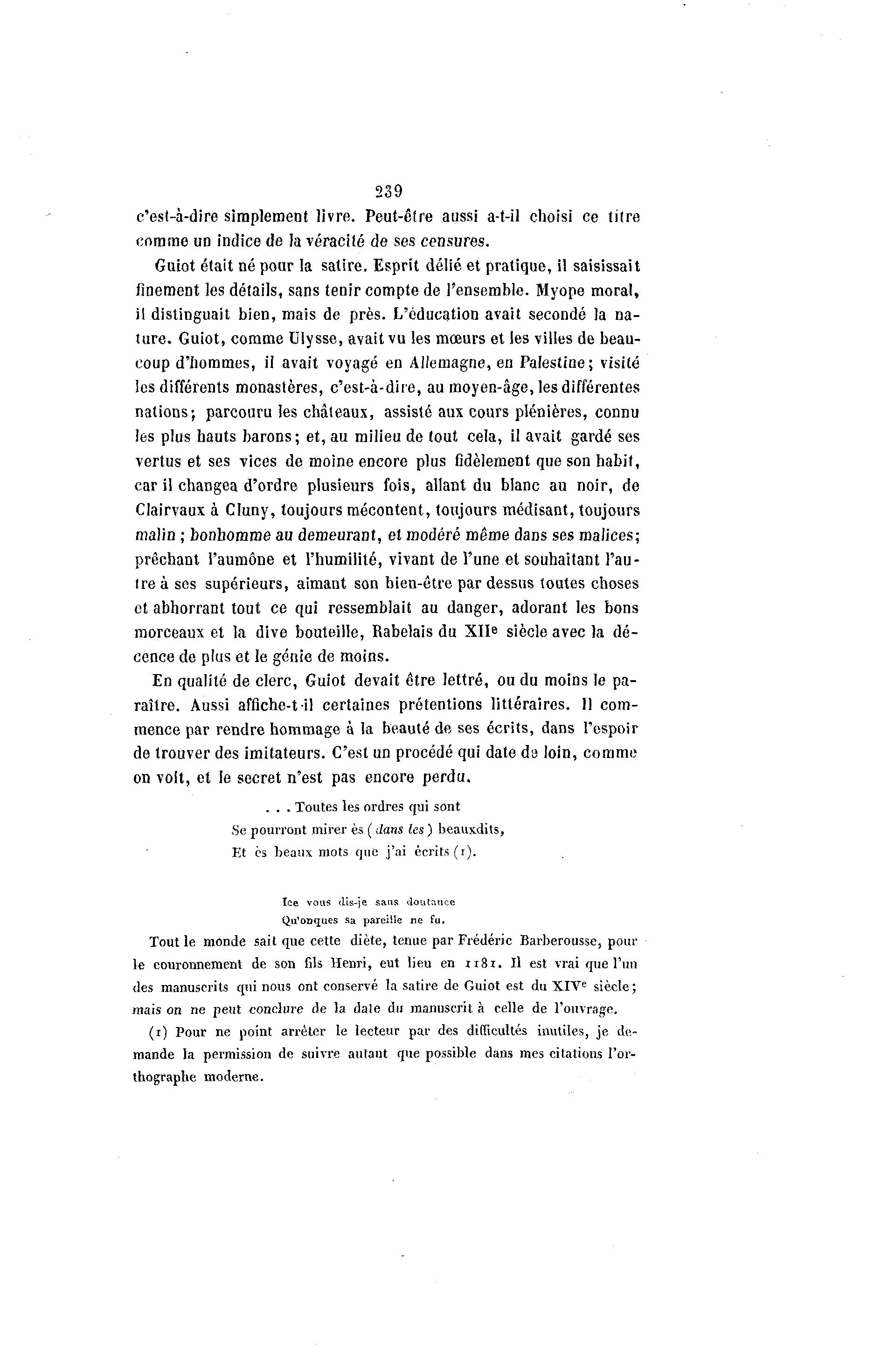 des manuscrits qui nous ont conservé la satire de Guiot est du XIV e siècle ;