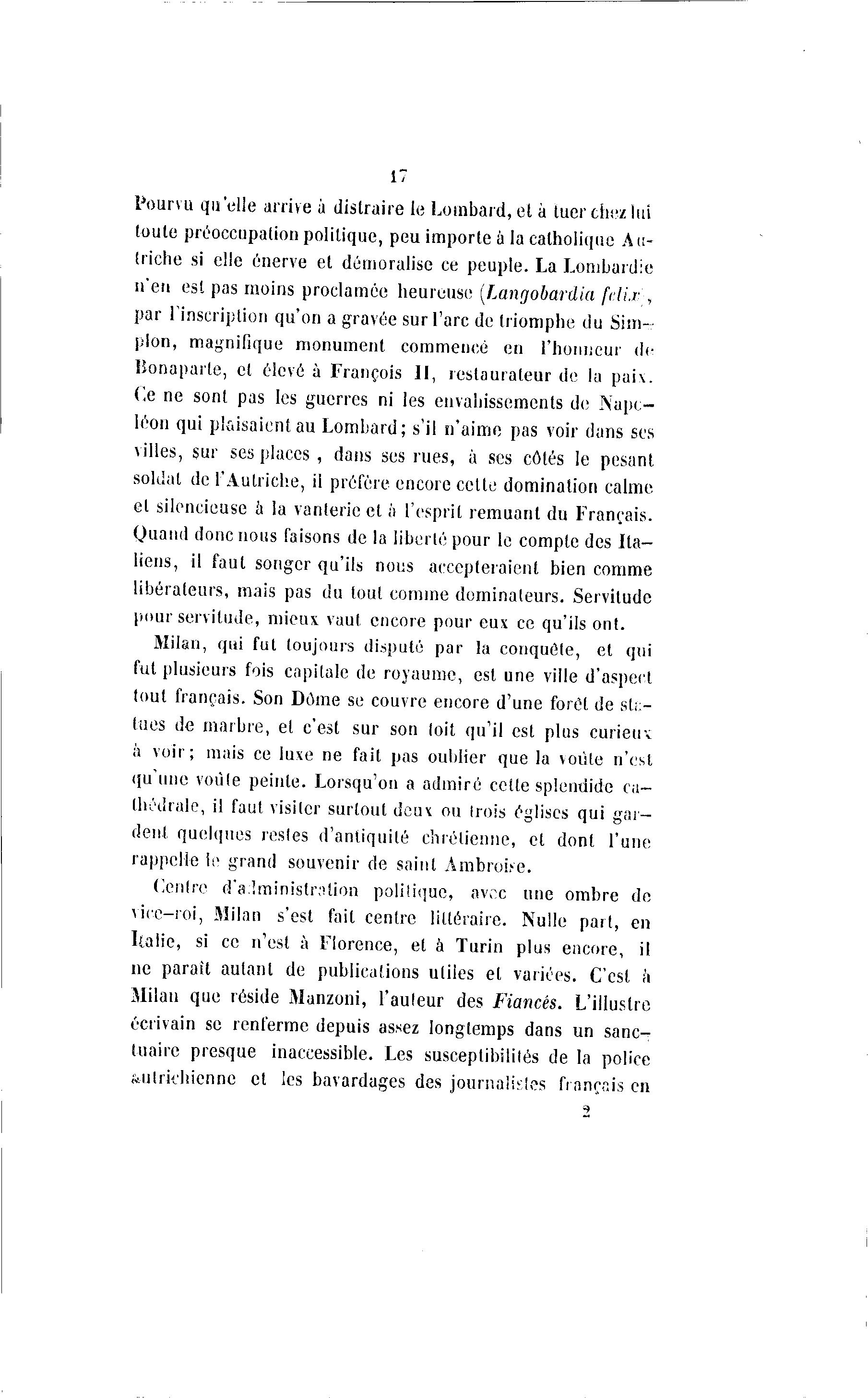 Milan que réside Manzoni, l'auleur des Fiancés. L'illustre