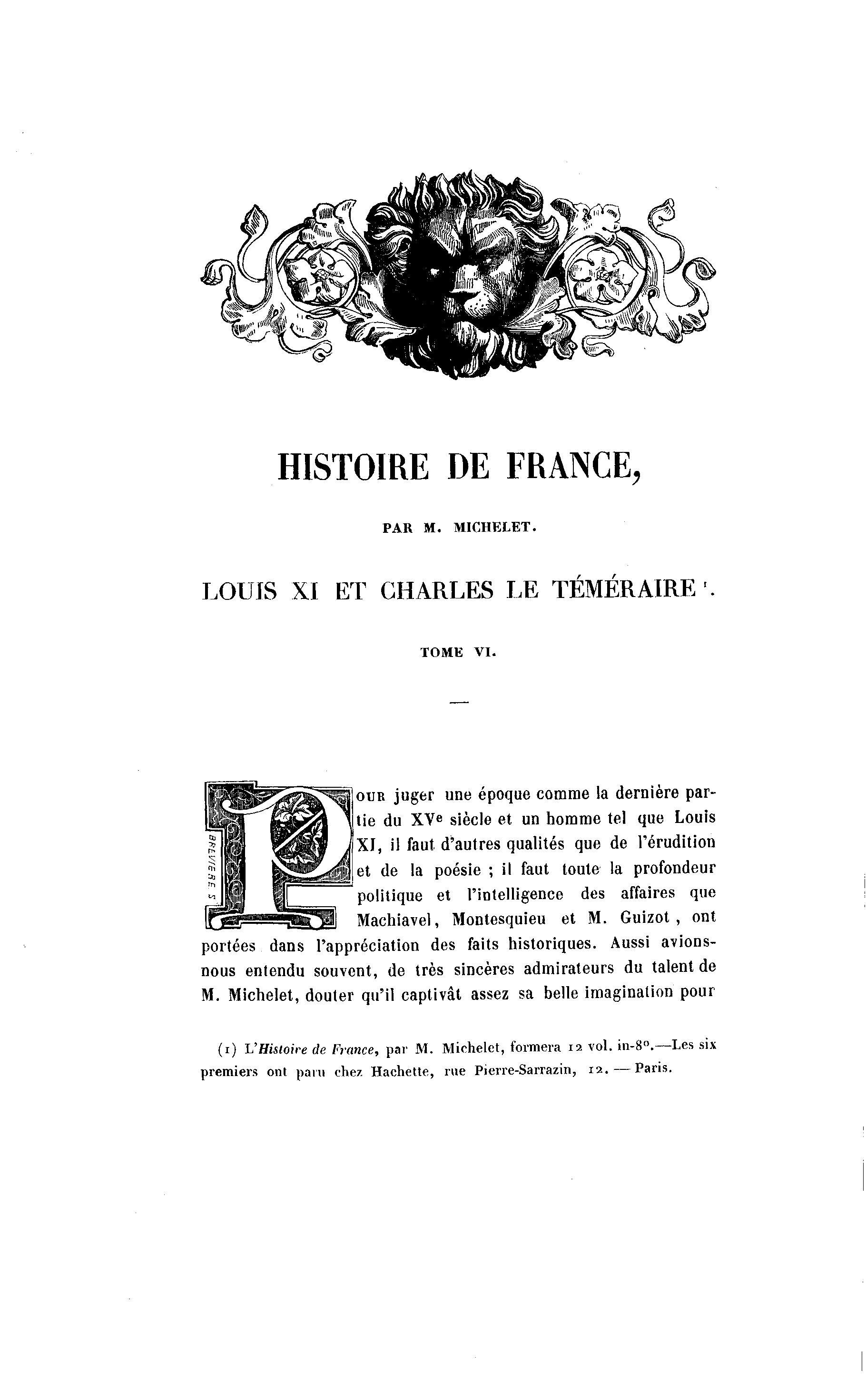(i) L'Histoire de France, par M. Michelet, formera 12 vol. in-8".—Les six