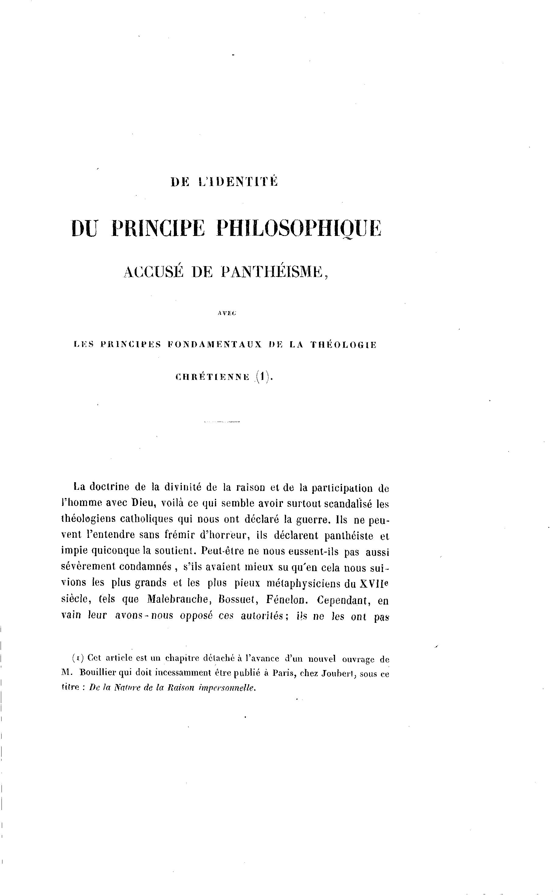 M. Bouillier qui doit incessamment être publié à Paris, chez Joubert, sous ce