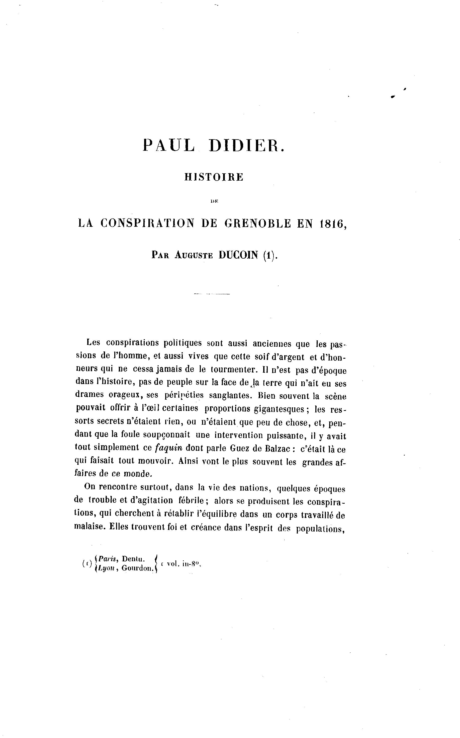LA. CONSPIRATION DE GRENOBLE EN 1816,