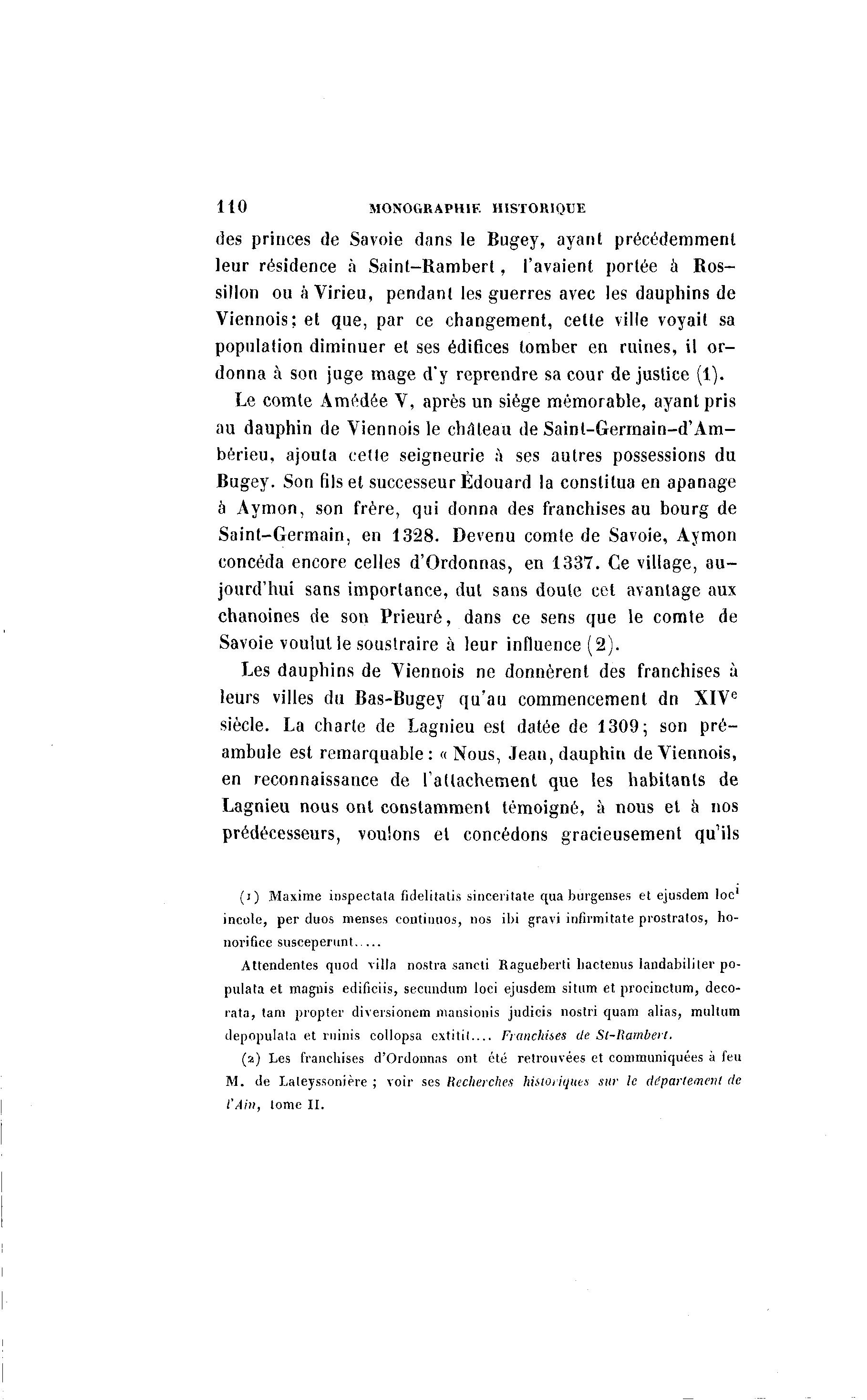 siècle. La charte de Lagnieu est datée de 1309; son pré-