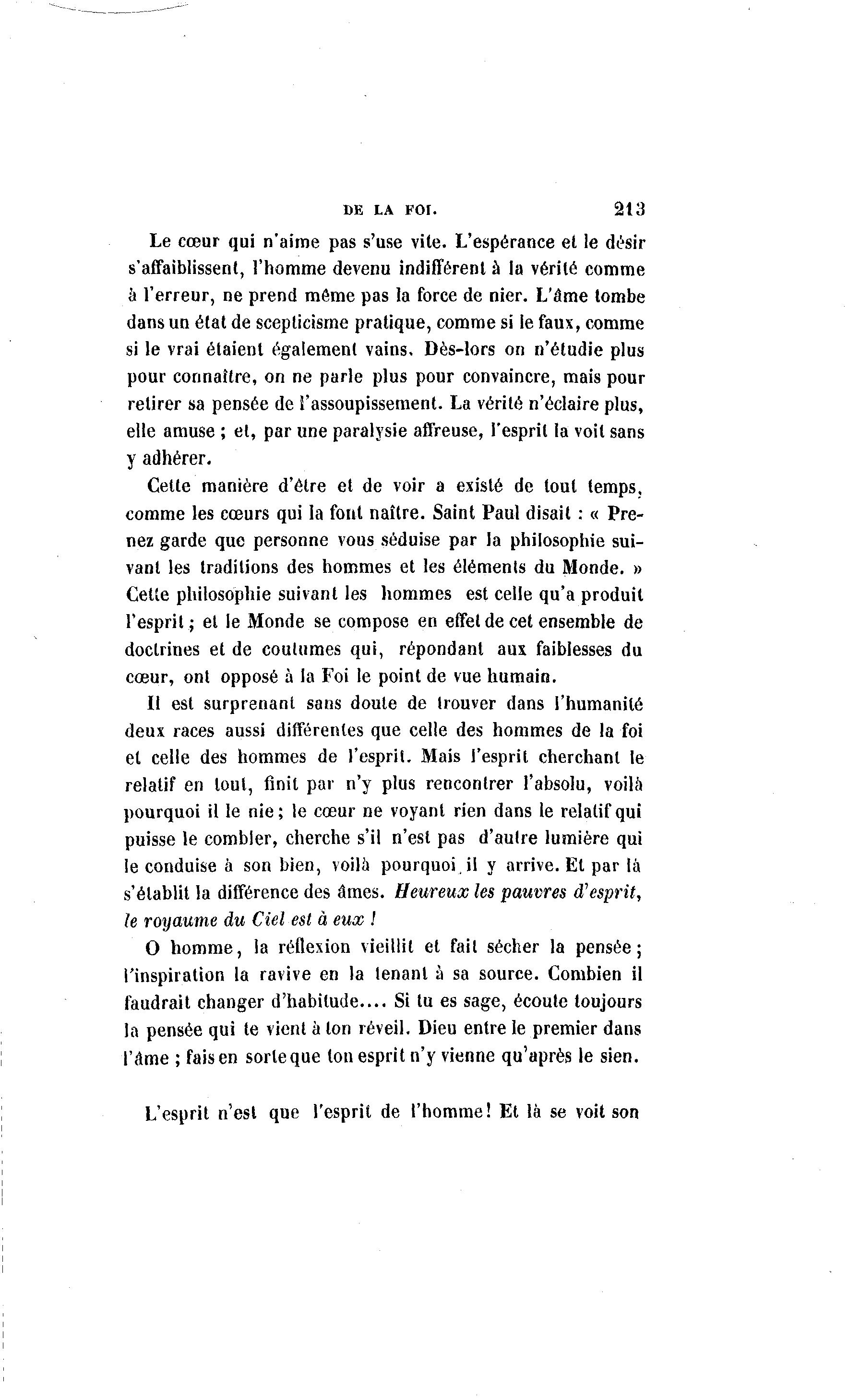 cœur, ont opposé à la Foi le point de vue humain.