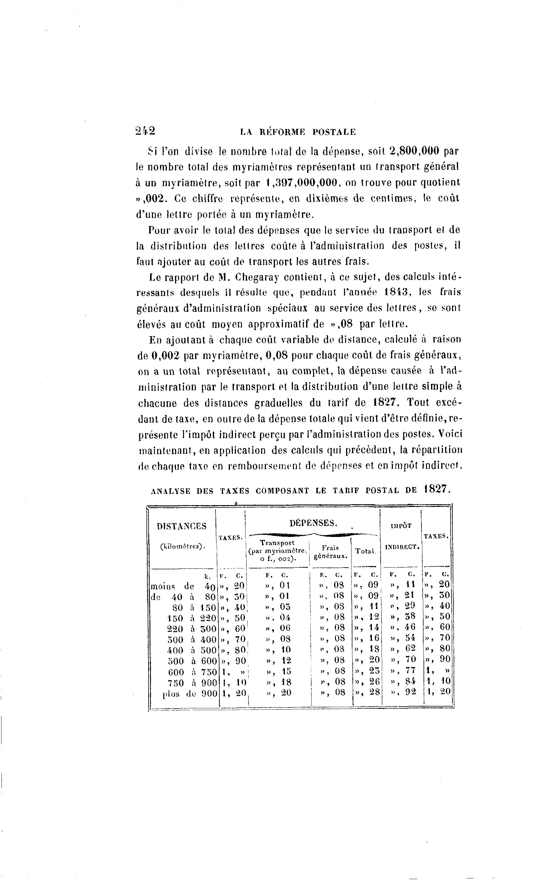 ANALYSE DES TAXES COMPOSANT LE TARIF POSTAL DE 1 8 2 7 .