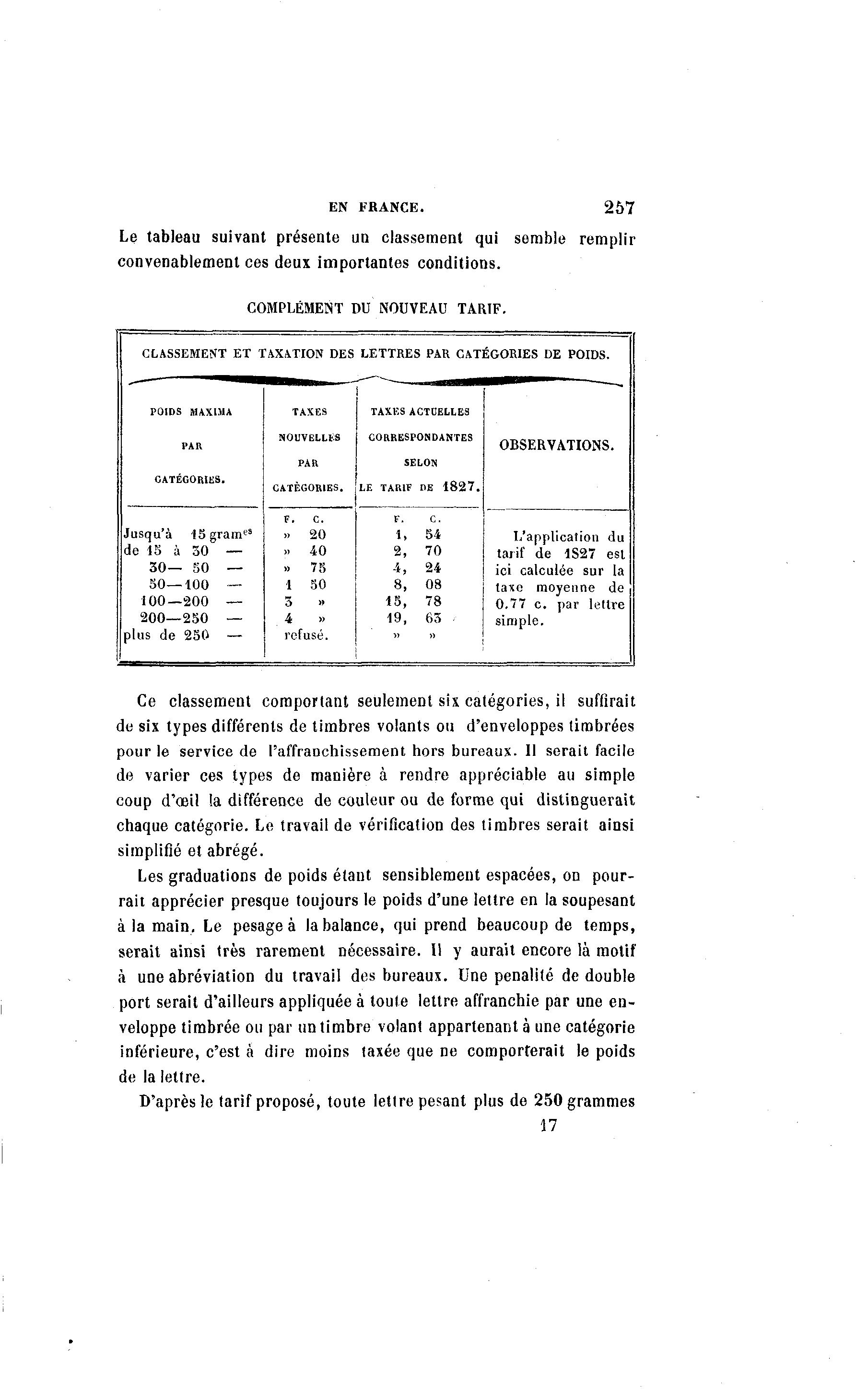 CLASSEMENT ET TAXATION DES LETTRES PAR CATÉGORIES DE POIDS.