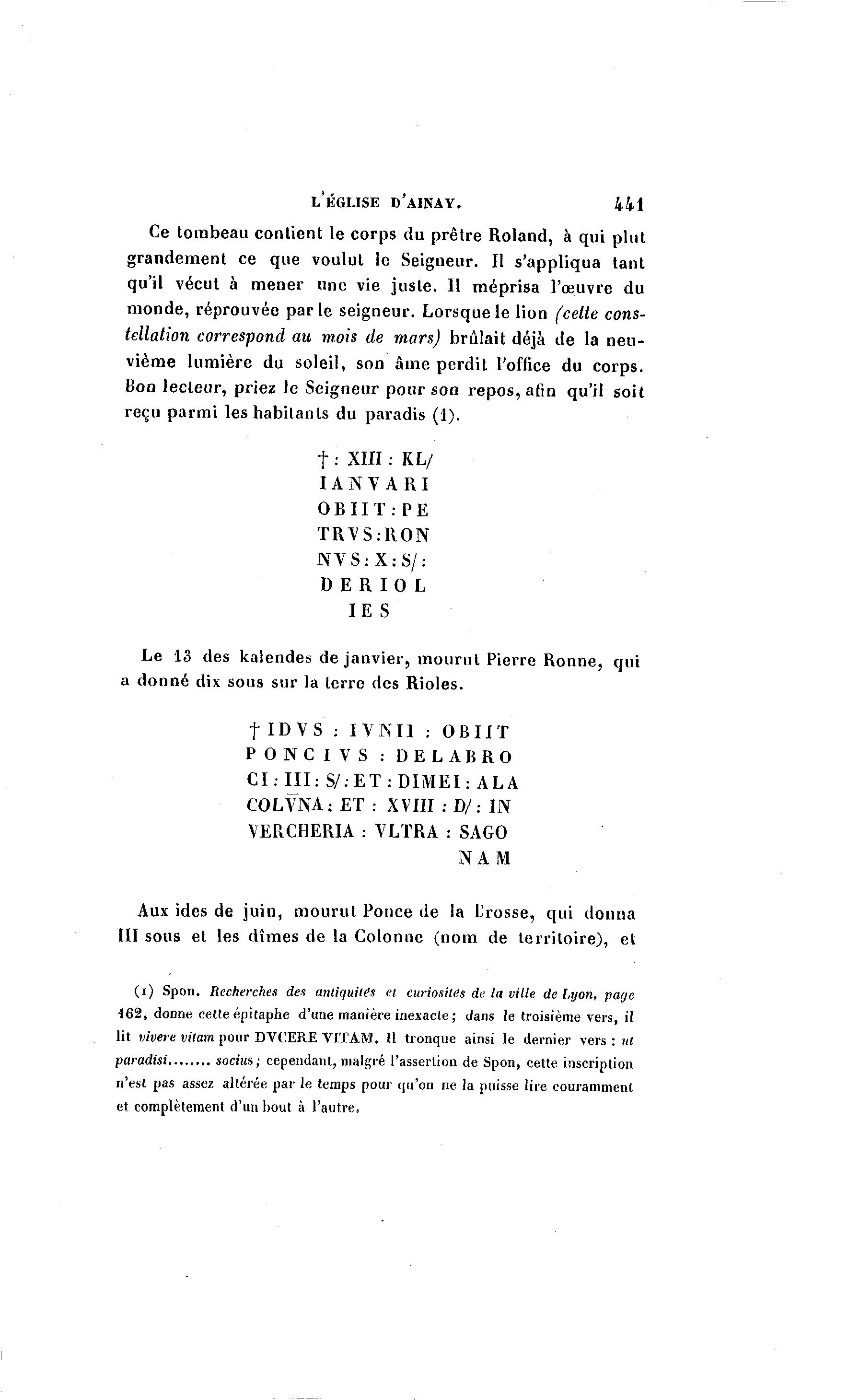 (i) Spon. Recherches des antiquités et curiosités de ta ville de Lyon, paye