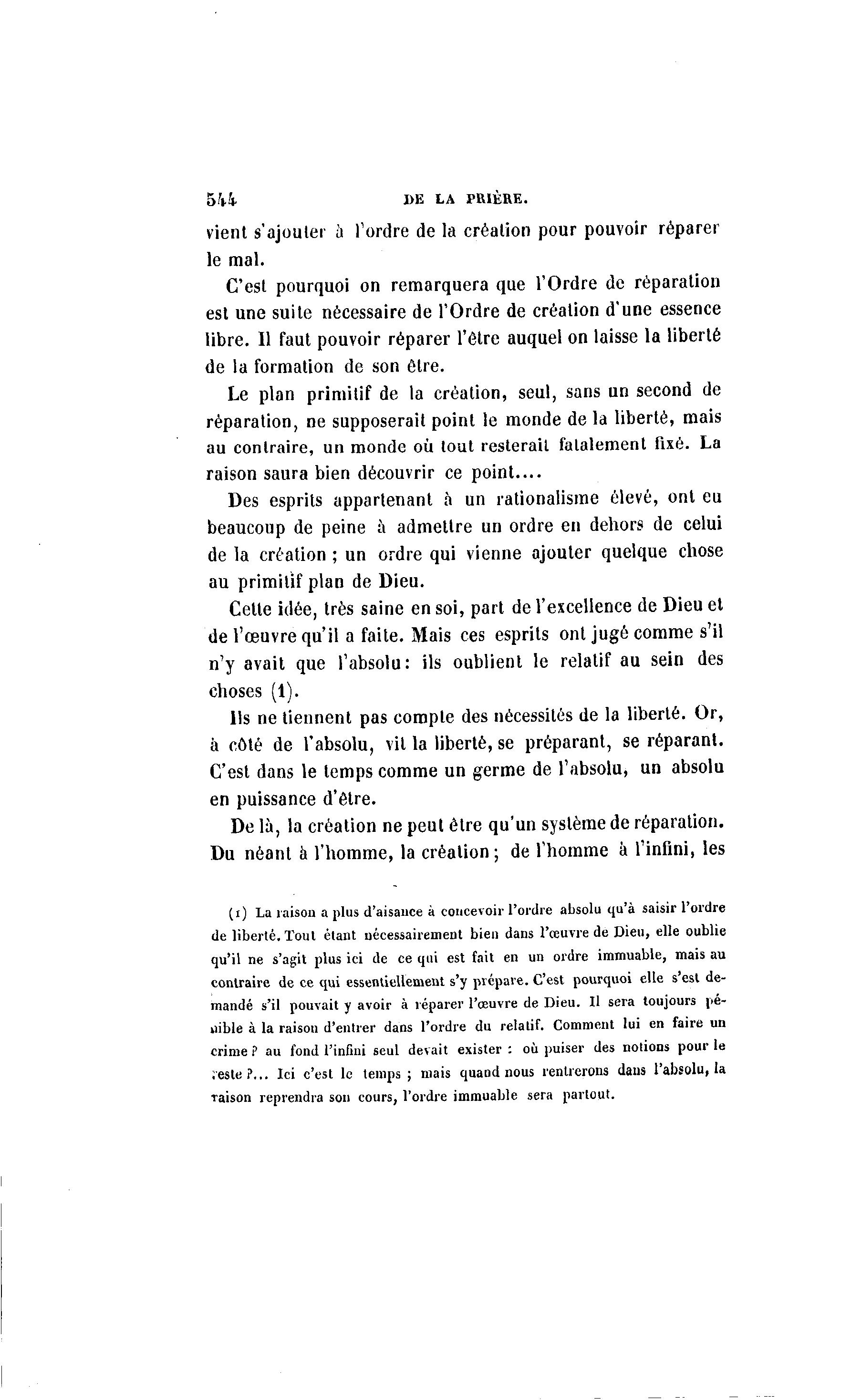 544- DE LA PRIÈRE. vient s'ajouter a Tordre de la création pour pouvoir réparer le mal. C'est pourquoi on remarquera que l'Ordre de réparation est une suite nécessaire de l'Ordre de création d'une essence libre. Il faut pouvoir réparer l'être auquel on laisse la liberté de la formation de son être. Le plan primitif de la création, seul, sans un second de réparation, ne supposerait point le monde de la liberté, mais au contraire, un monde où tout resterait fatalement fixé. La raison saura bien découvrir ce point.... Des esprits appartenant à un rationalisme élevé, ont eu beaucoup de peine à admettre un ordre en dehors de celui de la création ; un ordre qui vienne ajouter quelque chose au primitif plan de Dieu. Cette idée, très saine en soi, part de l'excellence de Dieu et de l'œuvre qu'il a faite. Mais ces esprits ont jugé comme s'il n'y avait que l'absolu: ils oublient le relatif au sein des choses (1). Ils ne tiennent pas compte des nécessités de la liberté. Or, à côté de l'absolu, vit la liberté, se préparant, se réparant. C'est dans le temps comme un germe de l'absolu, un absolu en puissance d'être. De là , la création ne peut être qu'un système de réparation. Du néant à l'homme, la création; de l'homme à l'infini, les (i) La raison a plus d'aisance à concevoir l'ordre absolu qu'à saisir l'ordre de liberté. Tout étant nécessairement bien dans l'œuvre de Dieu, elle oublie qu'il ne s'agit plus ici de ce qui est fait en un ordre immuable, mais au contraire de ce qui essentiellement s'y prépare. C'est pourquoi elle s'est de- mandé s'il pouvait y avoir à réparer l'œuvre de Dieu. Il sera toujours pé- nible à la raison d'entrer dans l'ordre du relatif. Comment lui en faire un crime ? au fond l'infini seul devait exister : où puiser des notions pour le ieste?... Ici c'est le temps ; mais quand nous rentrerons dans l'absolu, la raison reprendra son cours, l'ordre immuable sera partout.