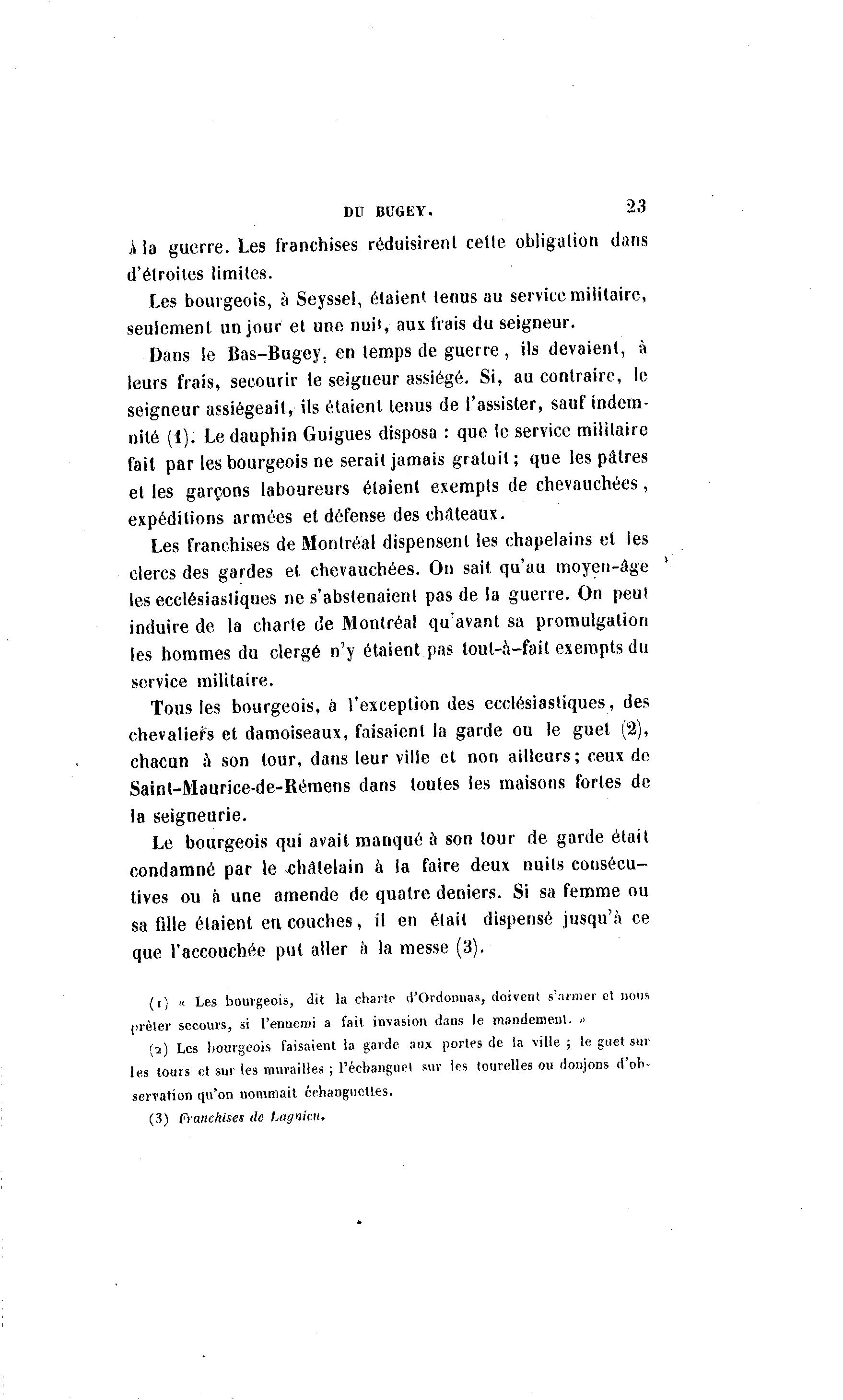 (i) « Les bourgeois, dit la charte d'Ordonnas, doivent s'armer et nous