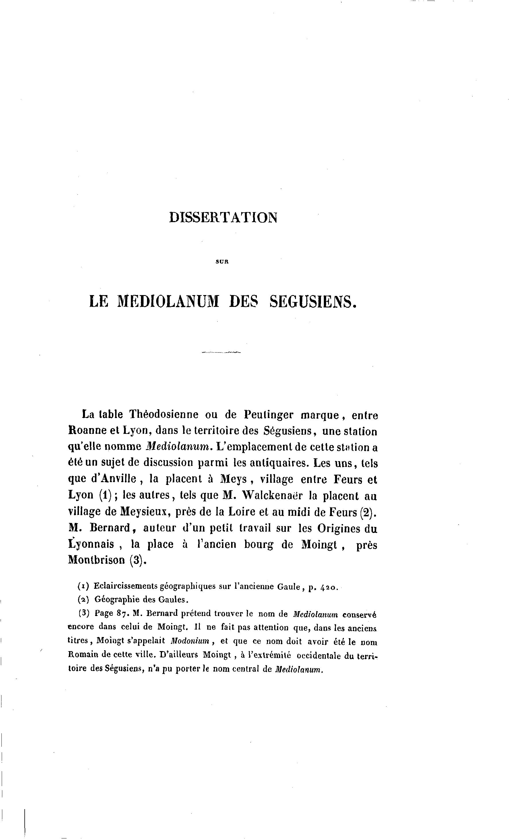 toire des Ségusiens, n'a pu porter le nom central de Mediolanum.