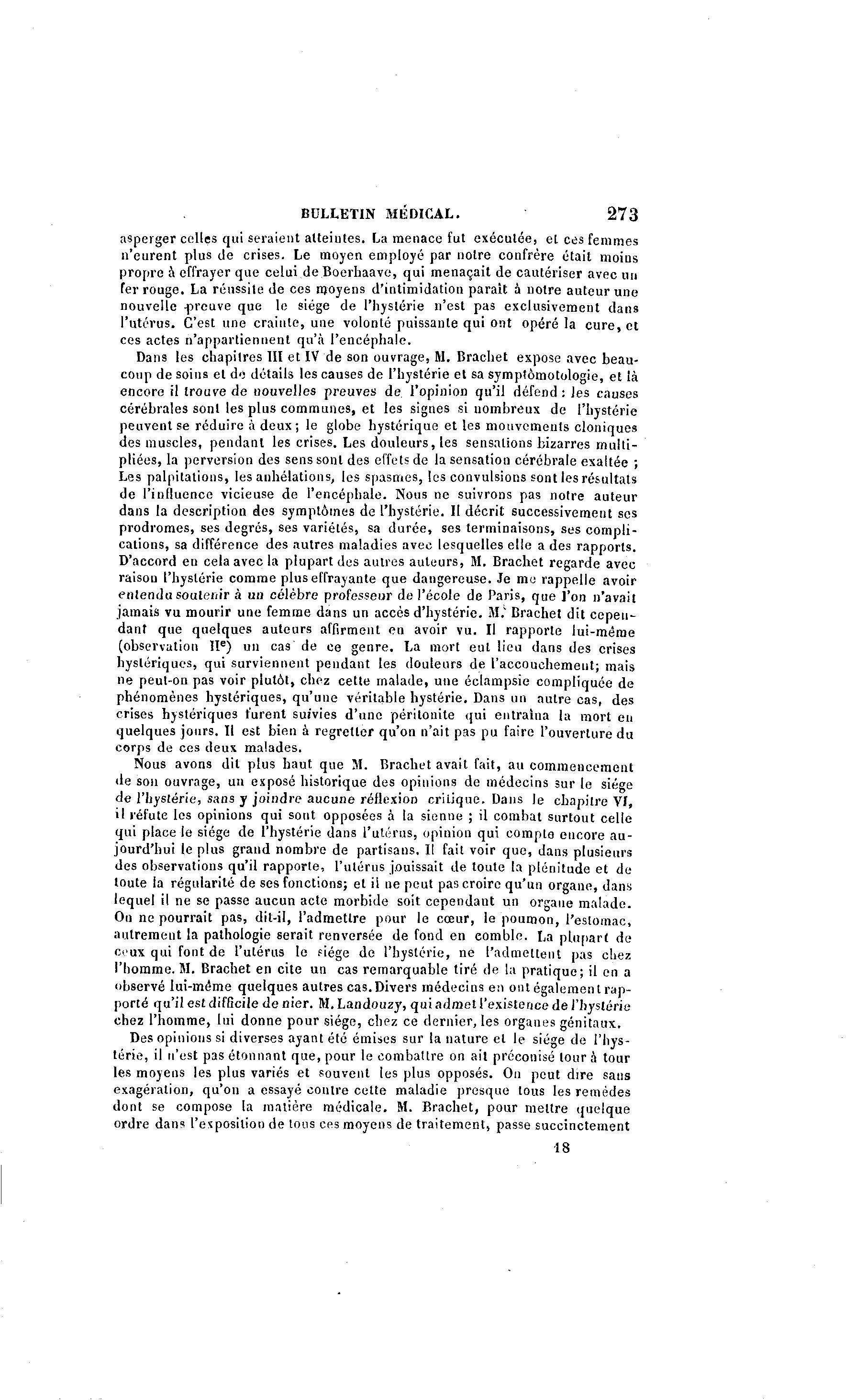 jamais vu mourir une femme dans un accès d'hystérie. M.' Brachet dit cepen-