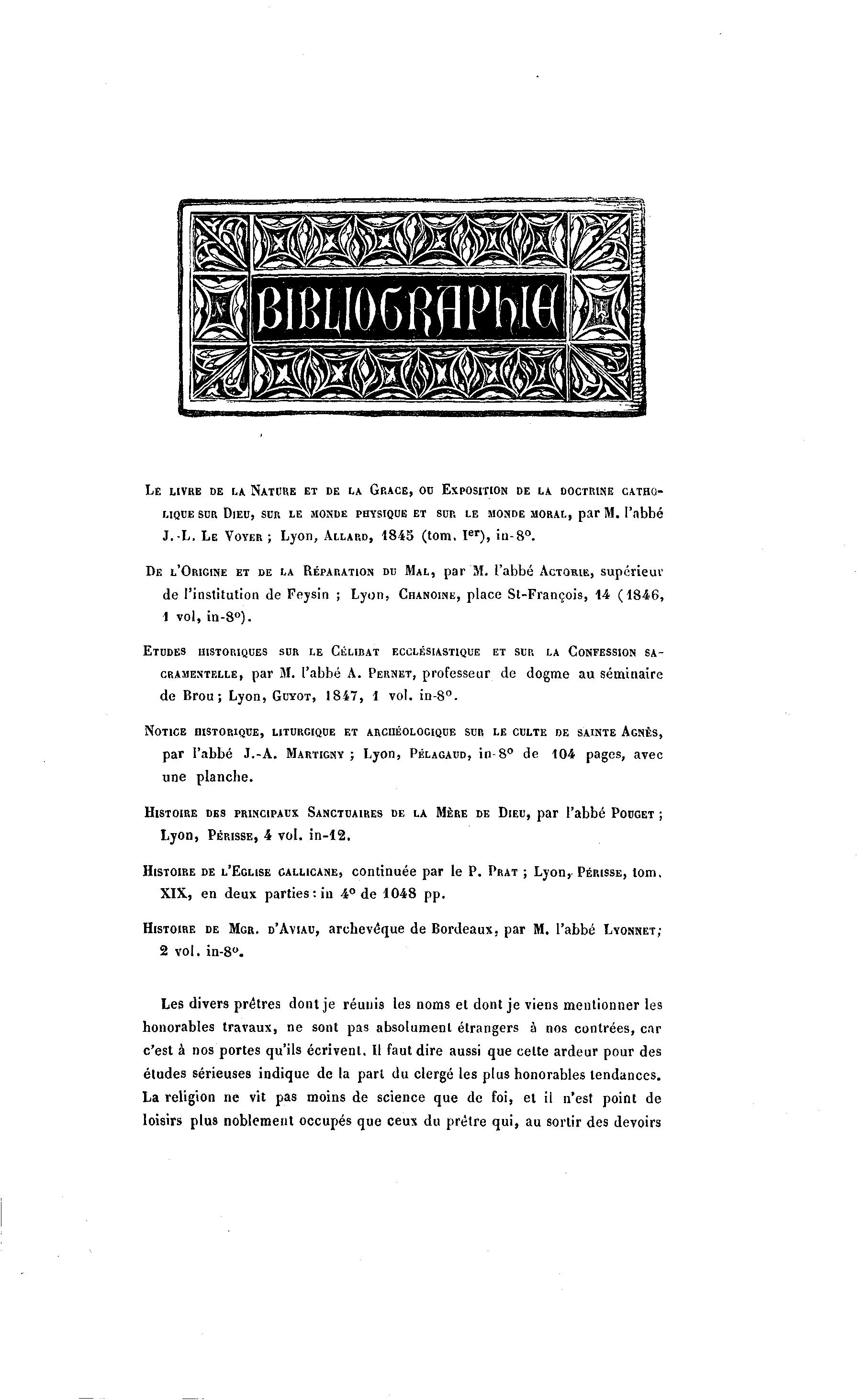 J . - L . L E VOYER ; Lyon, ALLARD, 1845 (tom. I e r ) , i n - 8 ° .