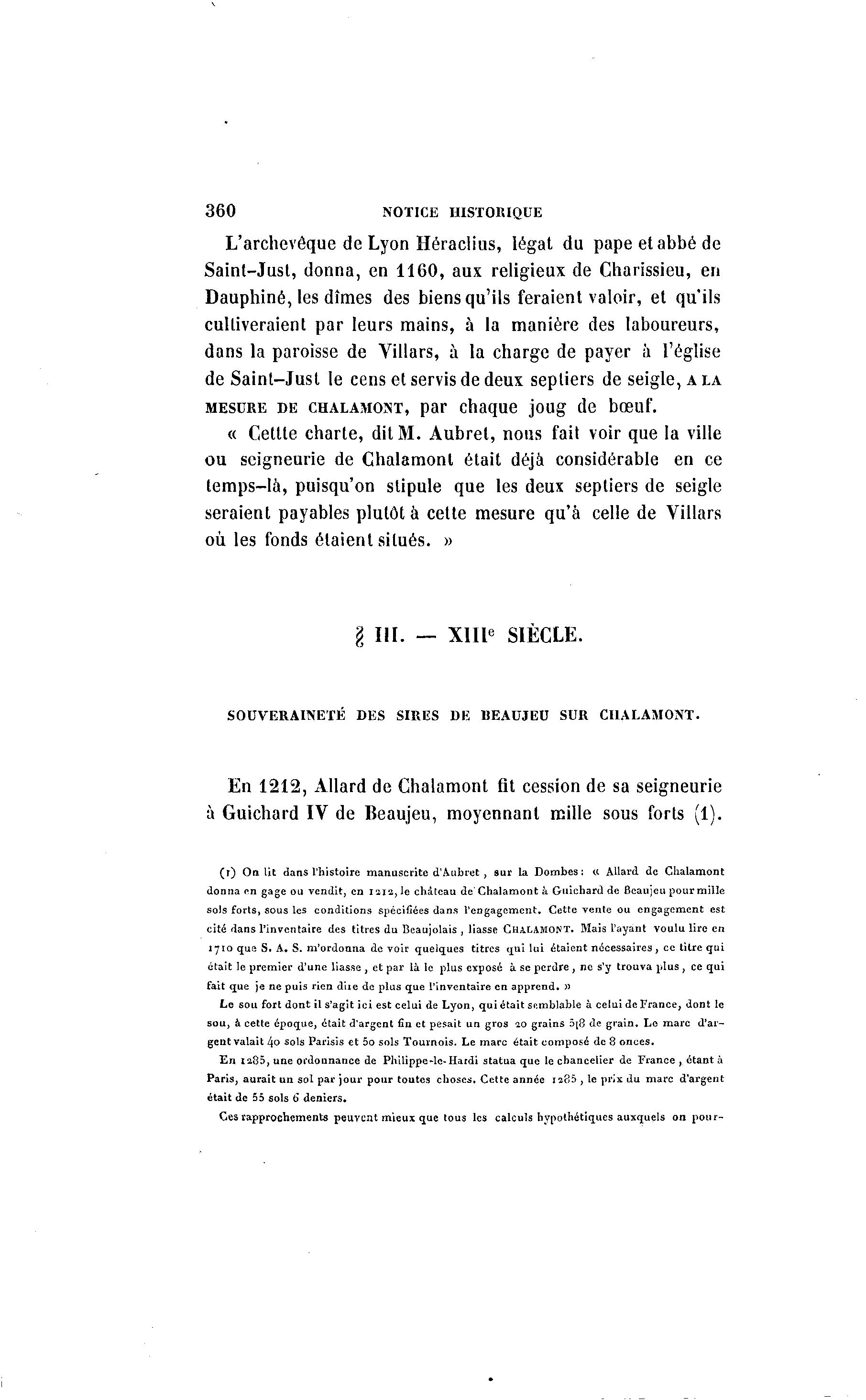 cité dans l'inventaire des titres du Beaujolais , liasse CHALAMONT. Mais l'ayant voulu lire en