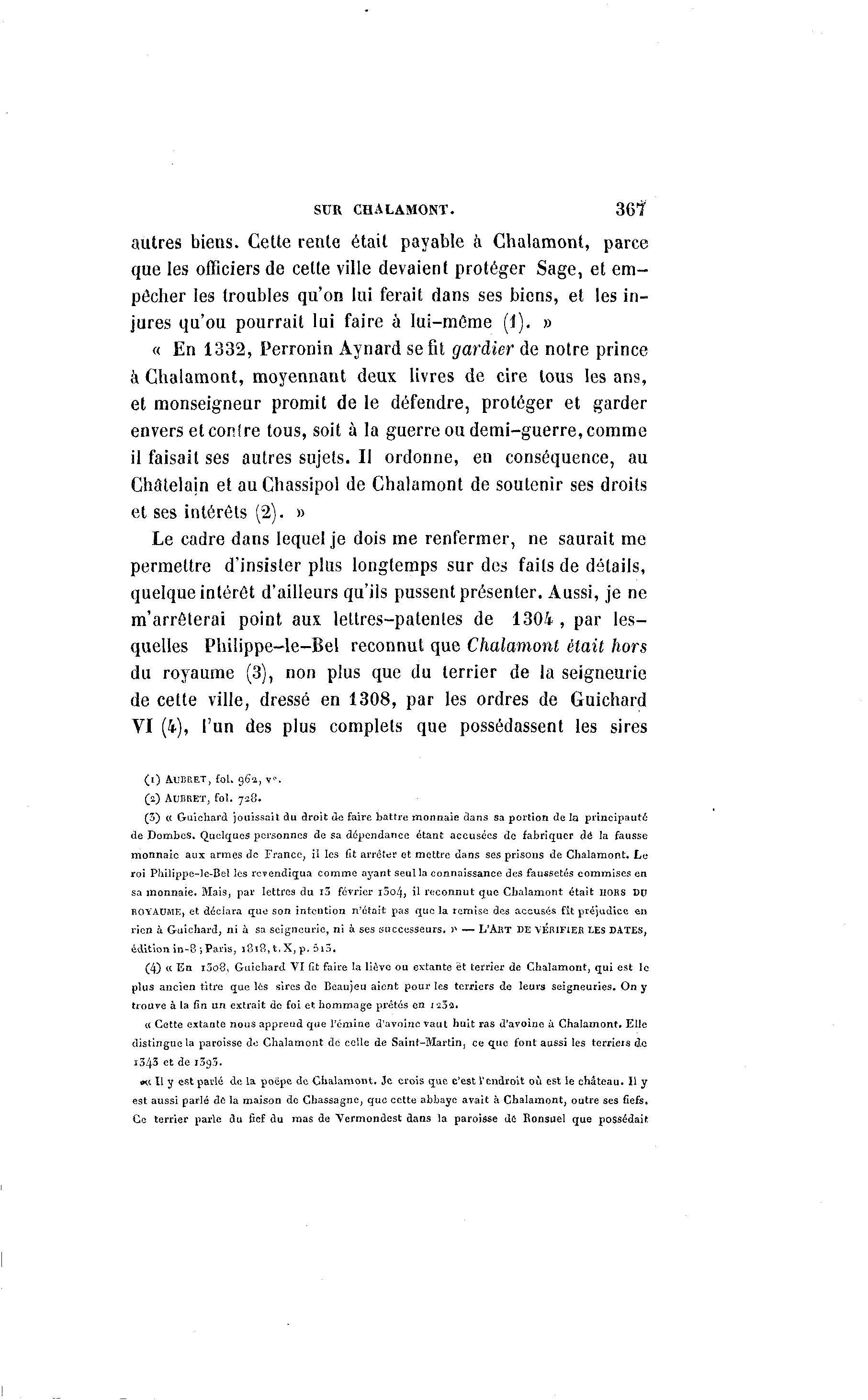 sa monnaie. Mais, par lettres du l3 février i3o4, il reconnut que Chalamont était HORS DU