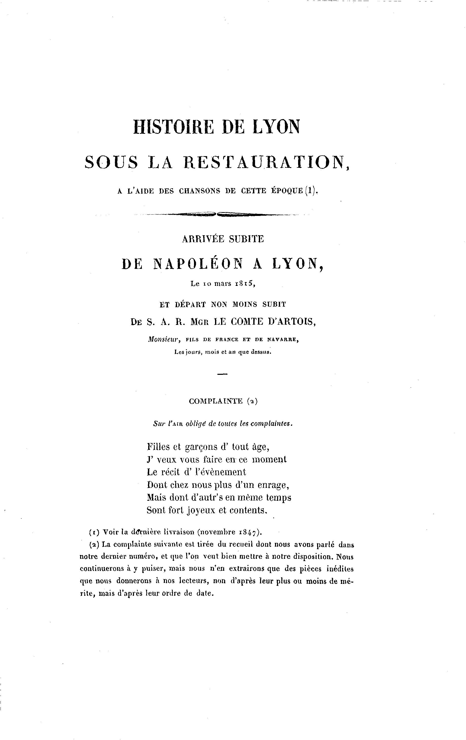 DE NAPOLÉON A LYON,