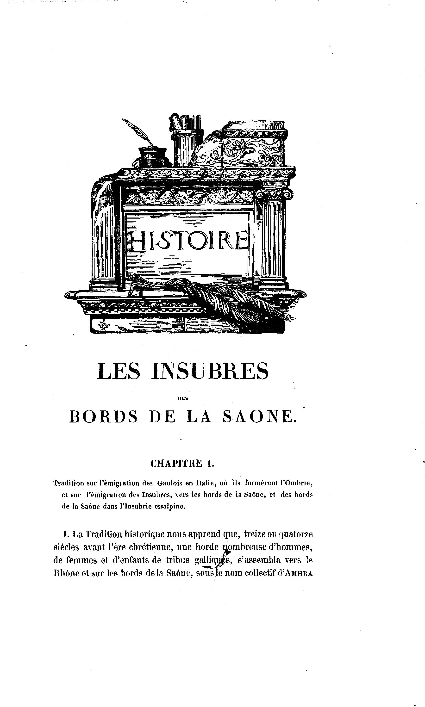 et sur l'émigration des Insubres, vers les bords de la Saône, et des bords