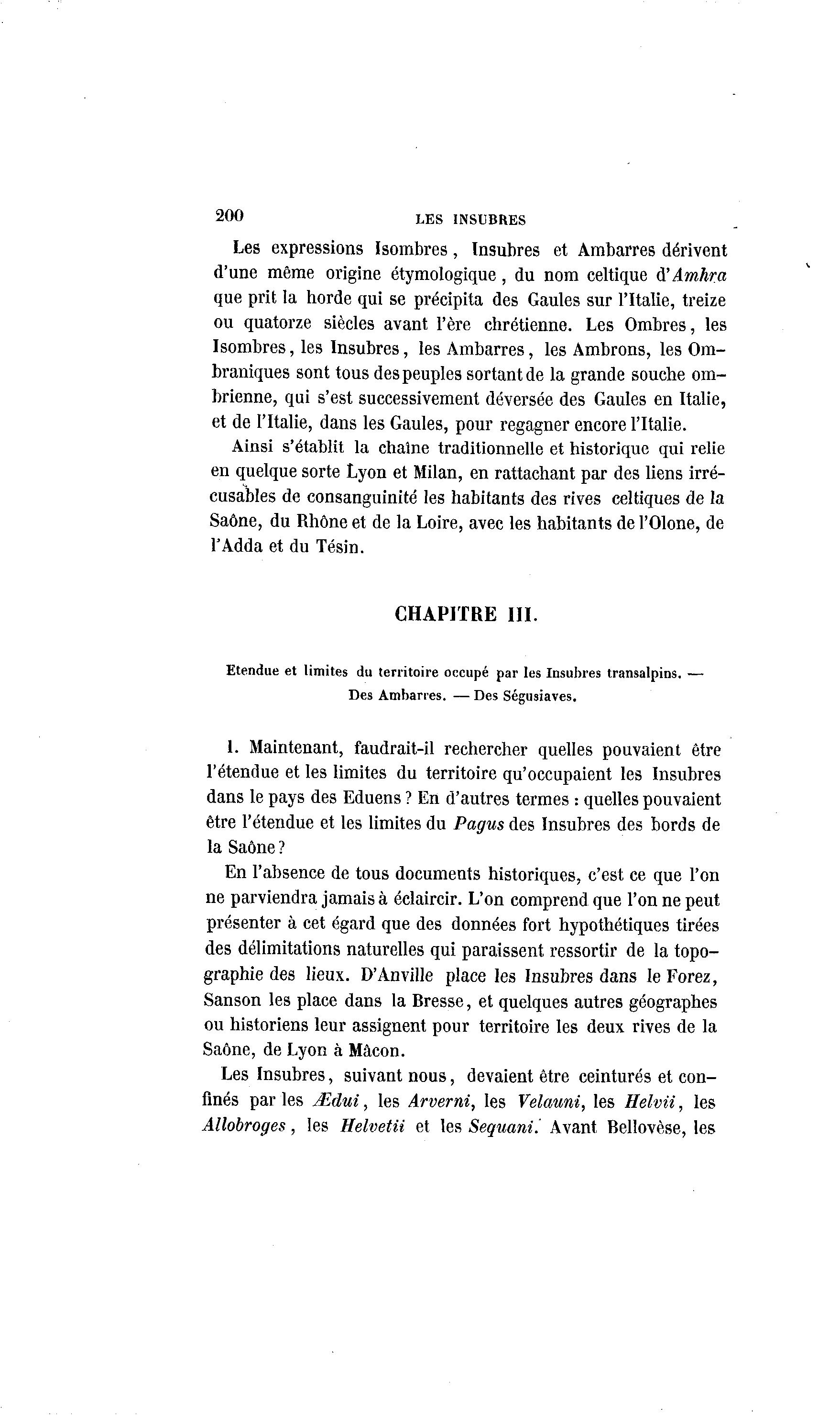 graphie des lieux. D'Anville place les Insubres dans le Forez,