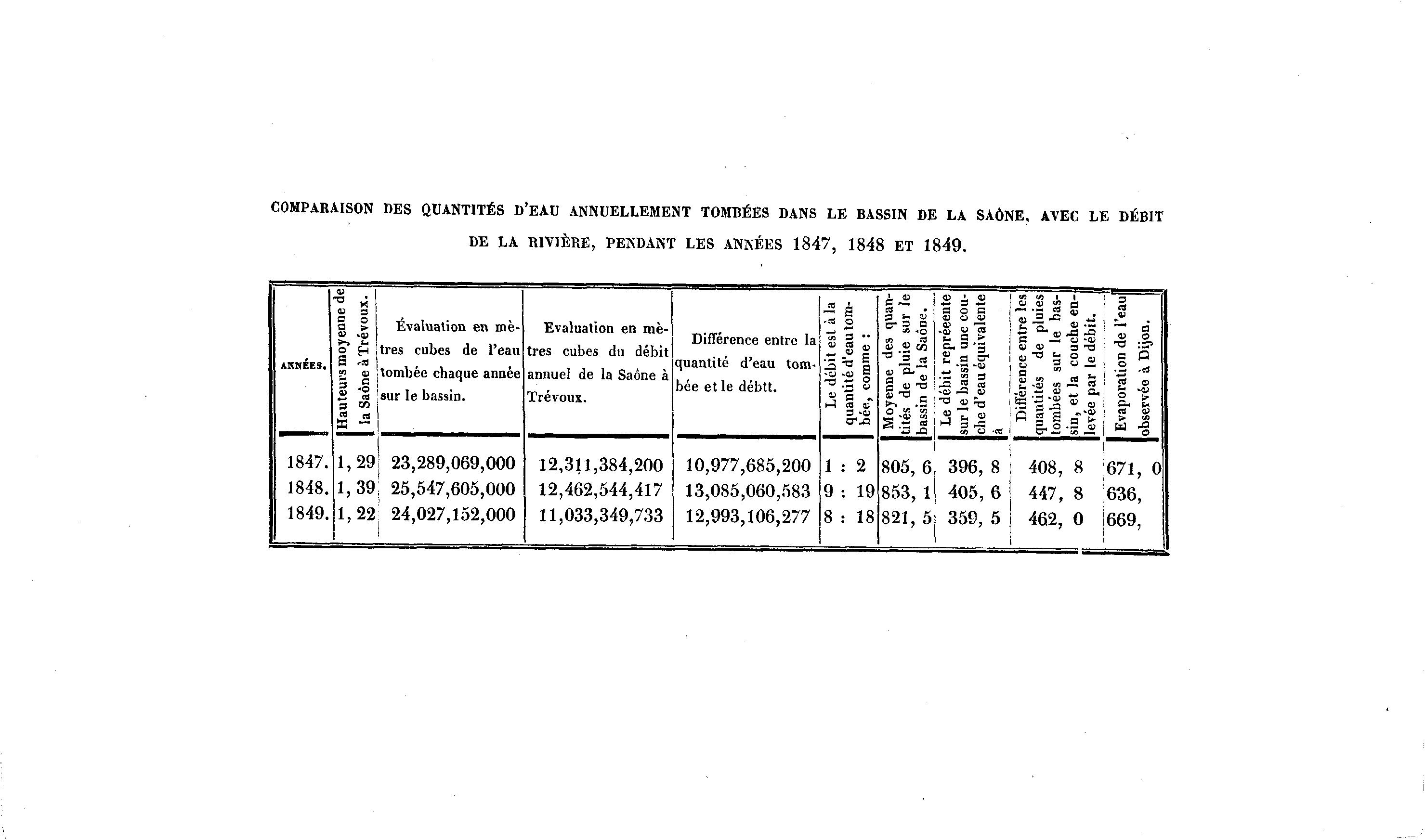 COMPARAISON DES QUANTITÉS D'EAU ANNUELLEMENT TOMBÉES DANS LE BASSIN DE LA SAÔNE, AVEC LE DÉBIT