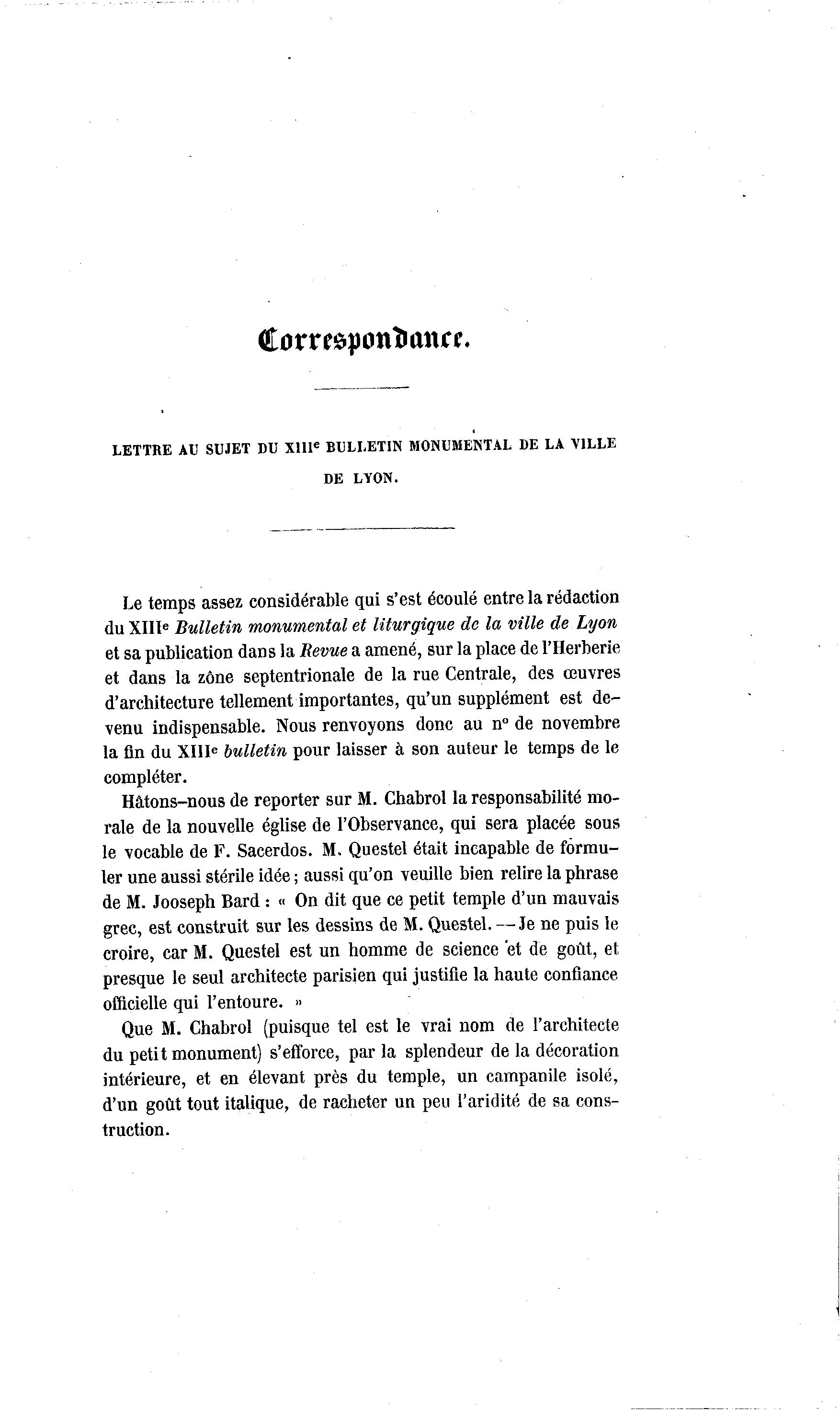 LETTRE AU SUJET DU XIII e BULLETIN MONUMENTAL DE LA VILLE