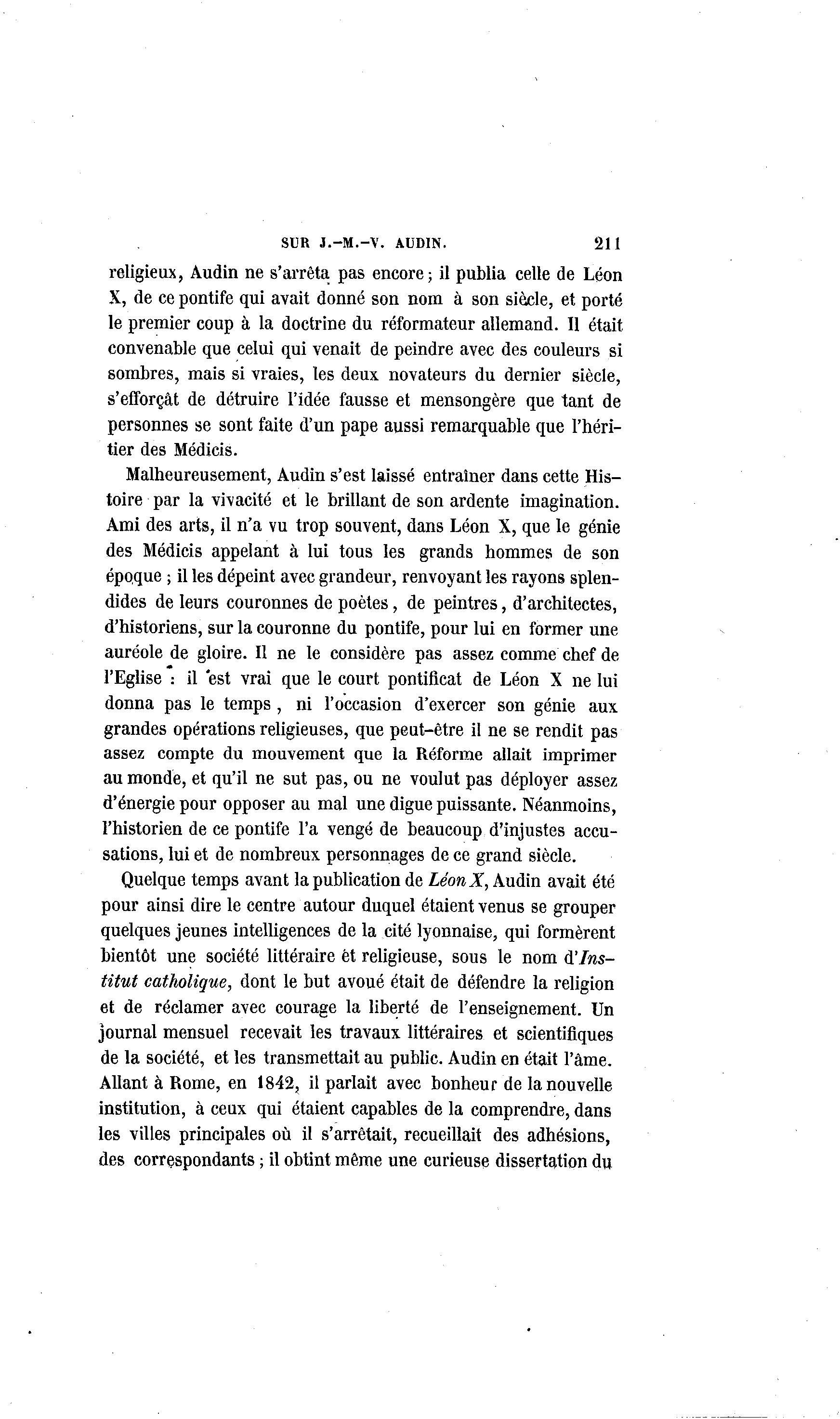 religieux, Àudin ne s'arrêta pas encore; il publia celle de Léon