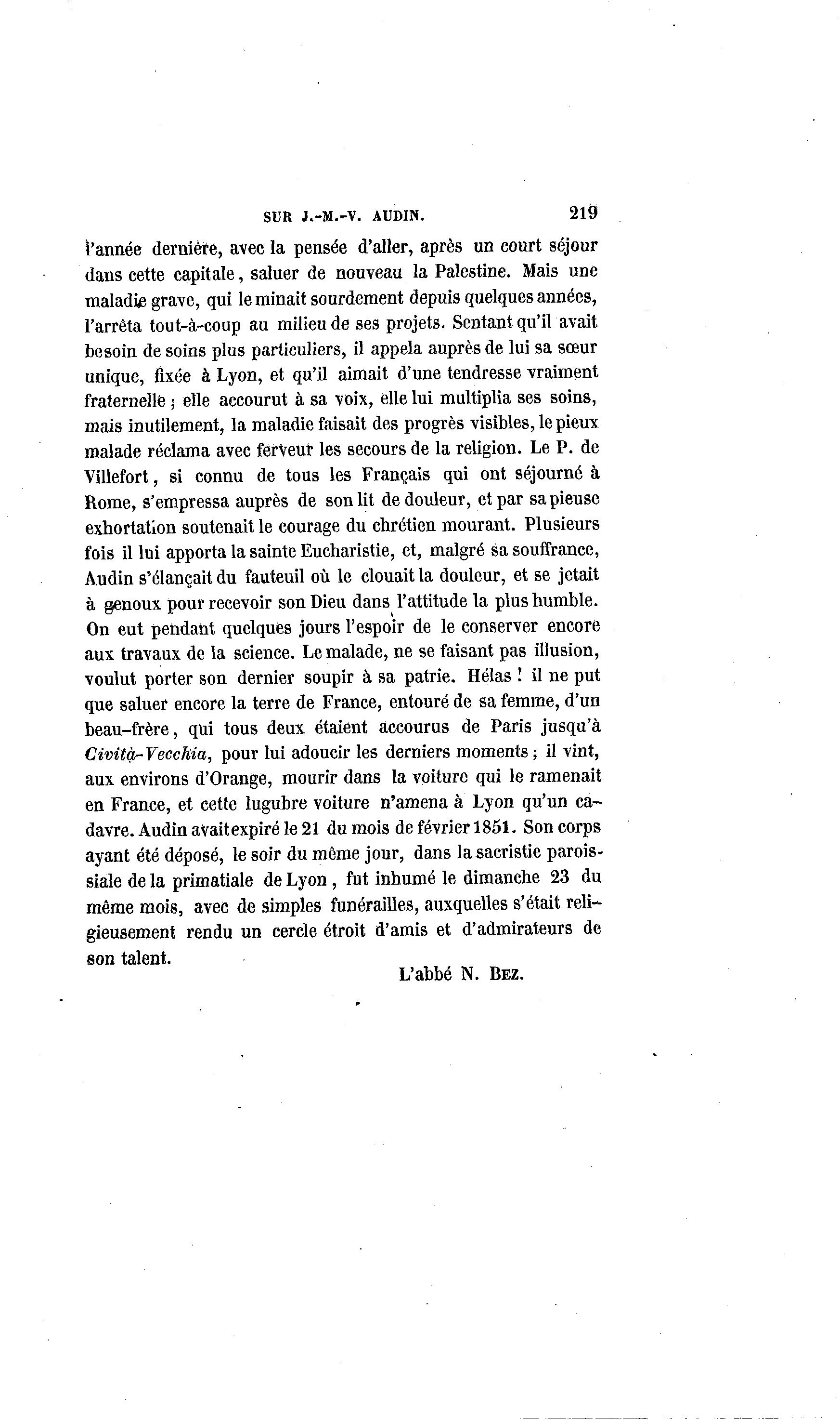 davre. Audin avaitexpiré le 21 du mois de février 1851. Son corps