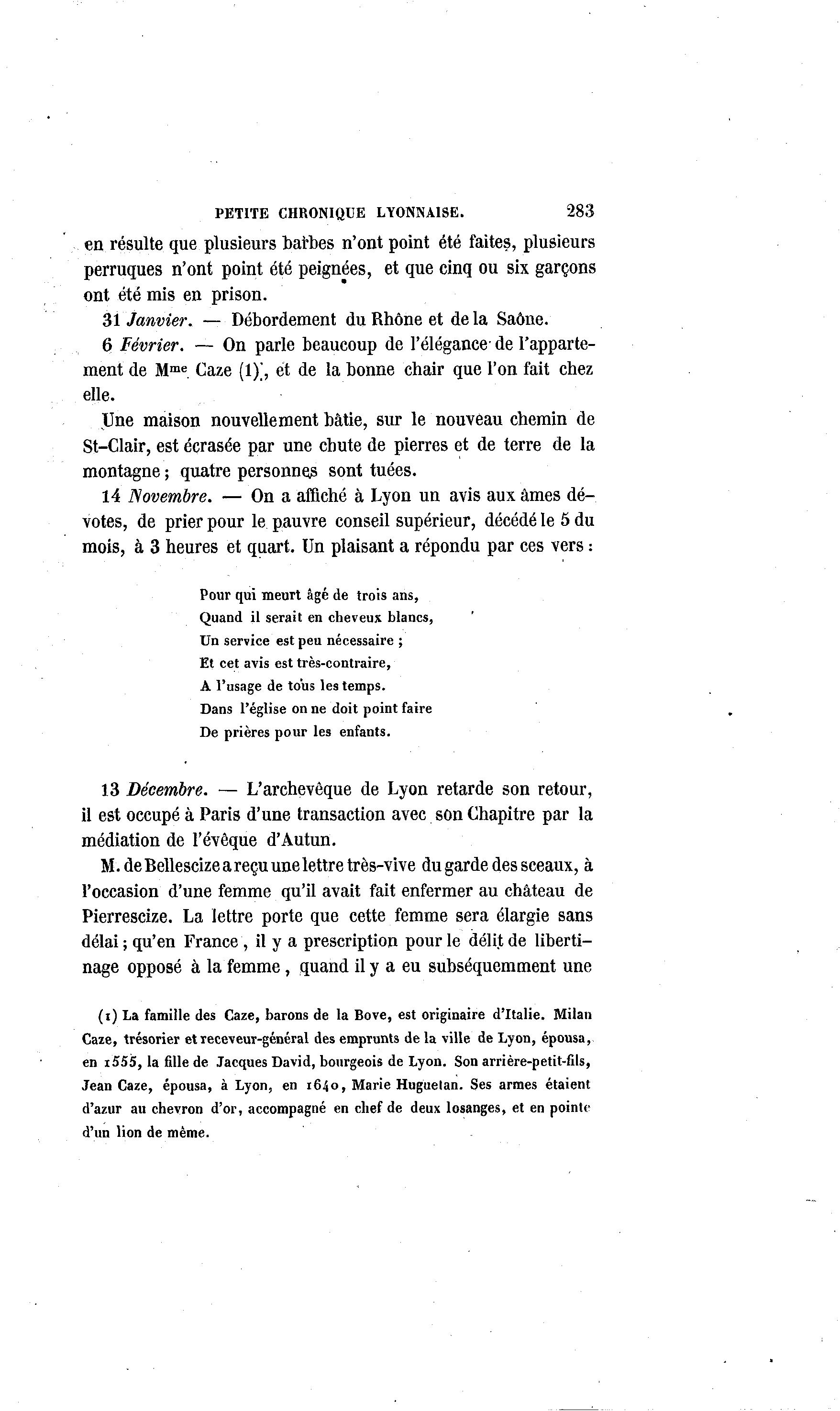PETITE CHRONIQUE LYONNAISE. 283