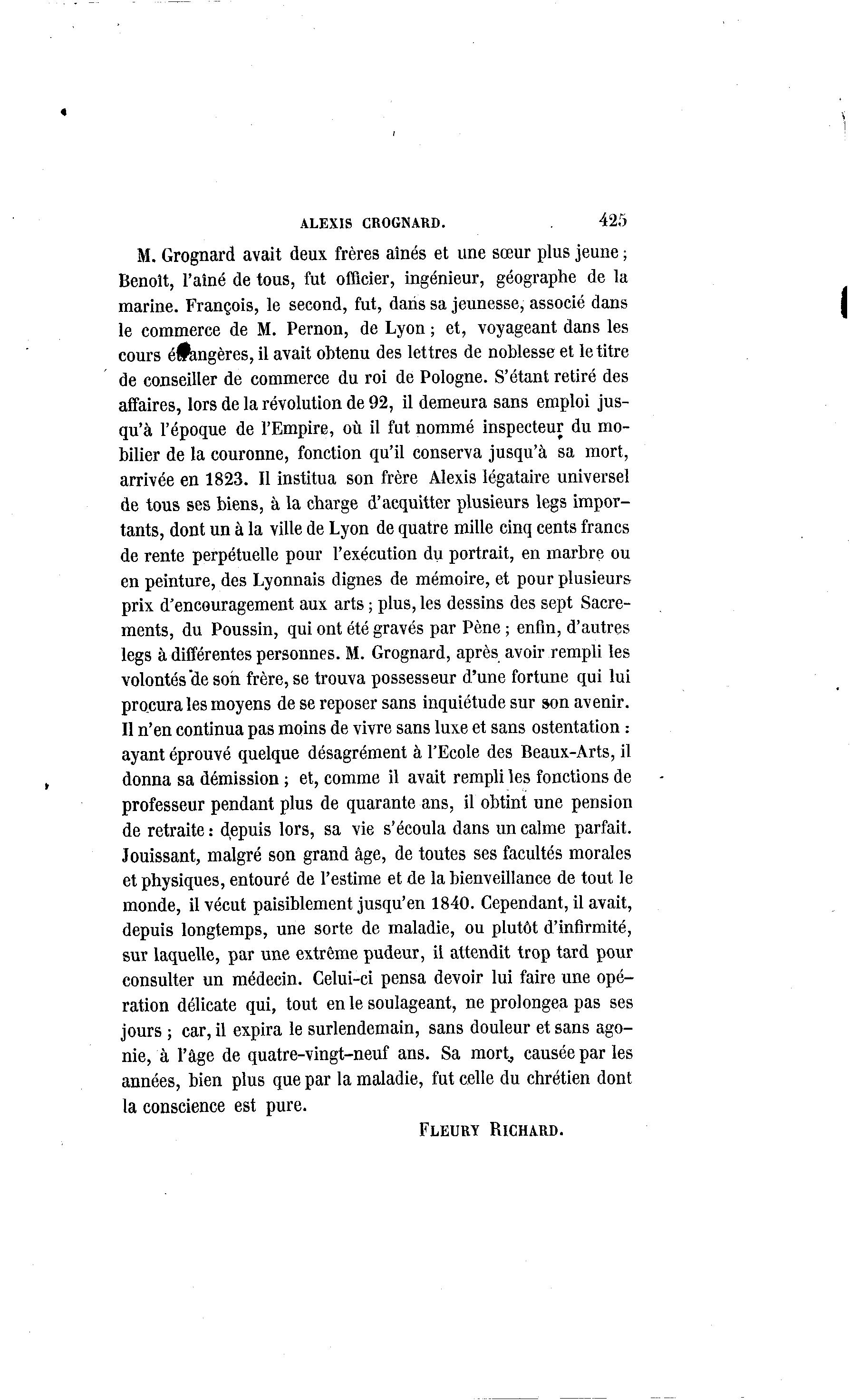 arrivée en 1823. Il institua son frère Alexis légataire universel