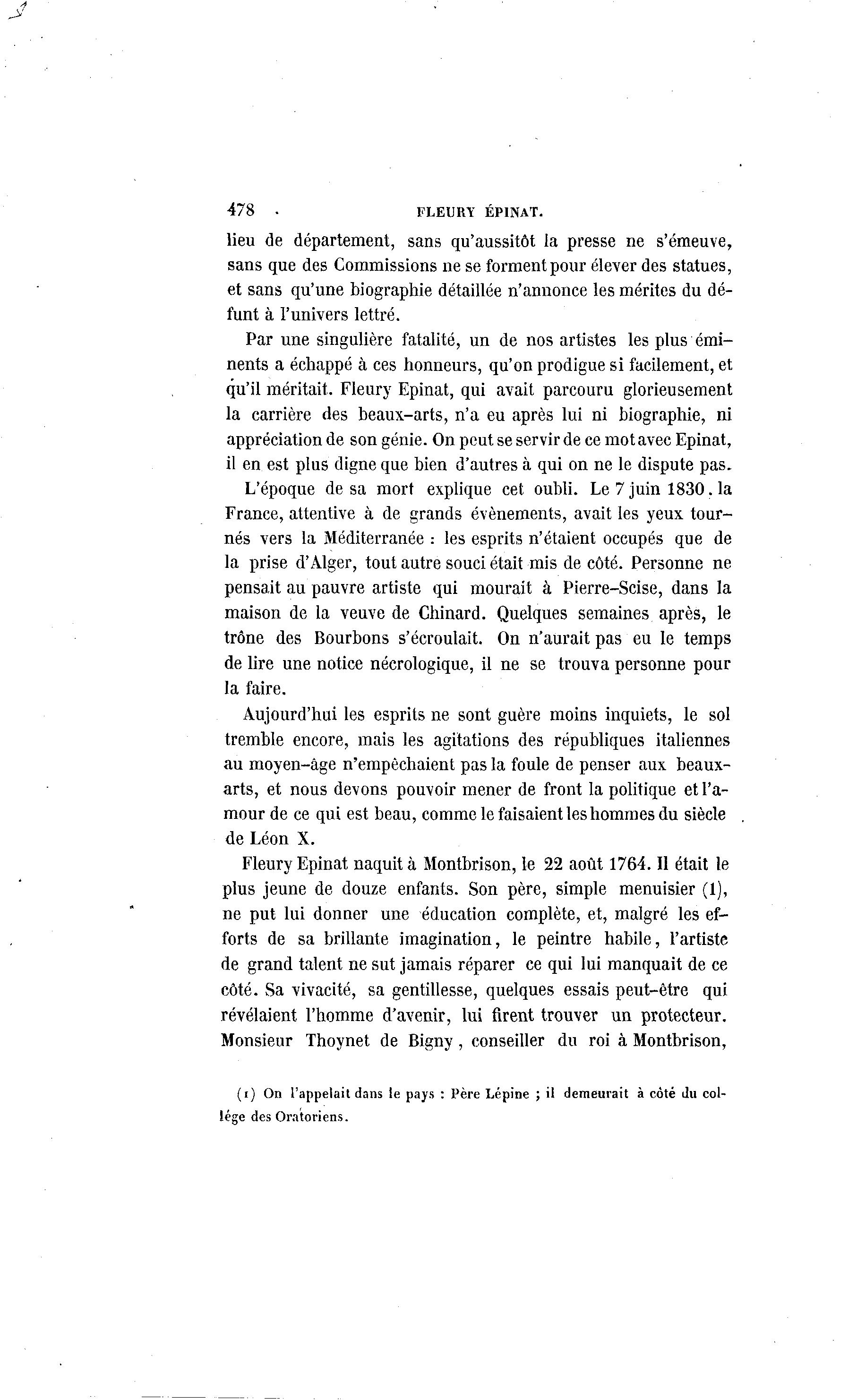 Fleury Epinat naquit à Montbrison, le 22 août 1764. Il était le