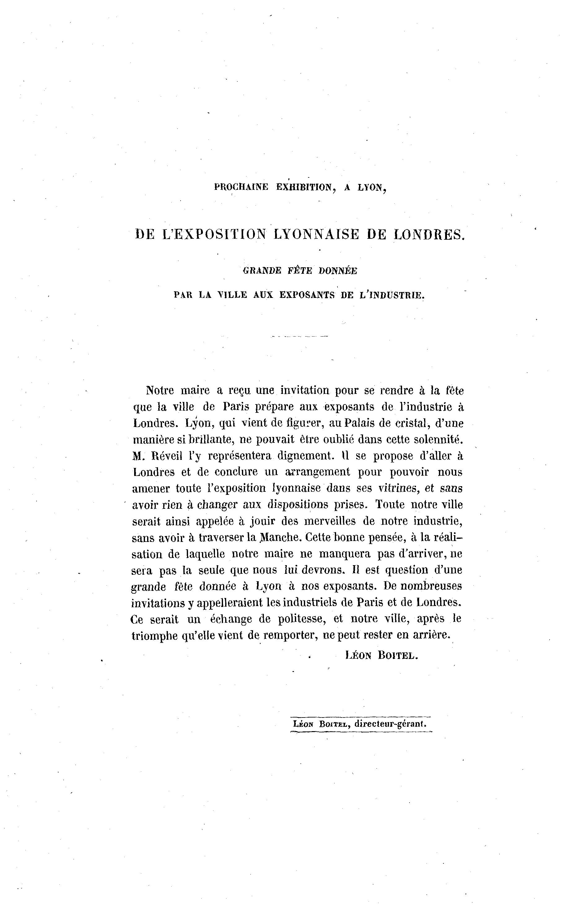 DE L'EXPOSITION LYONNAISE DE LONDRES.
