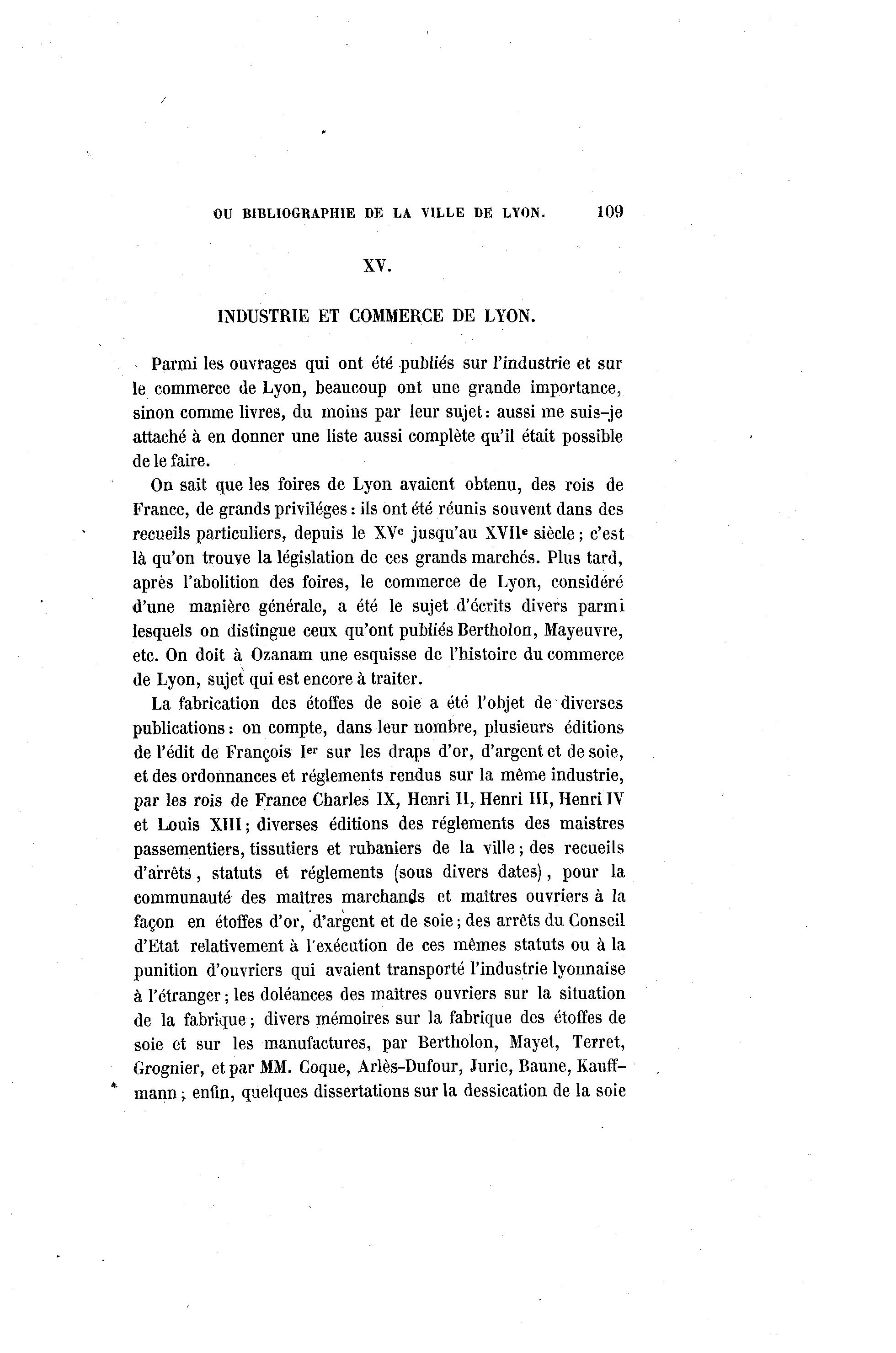 OU BIBLIOGRAPHIE DE LA VILLE DE LYON. 109