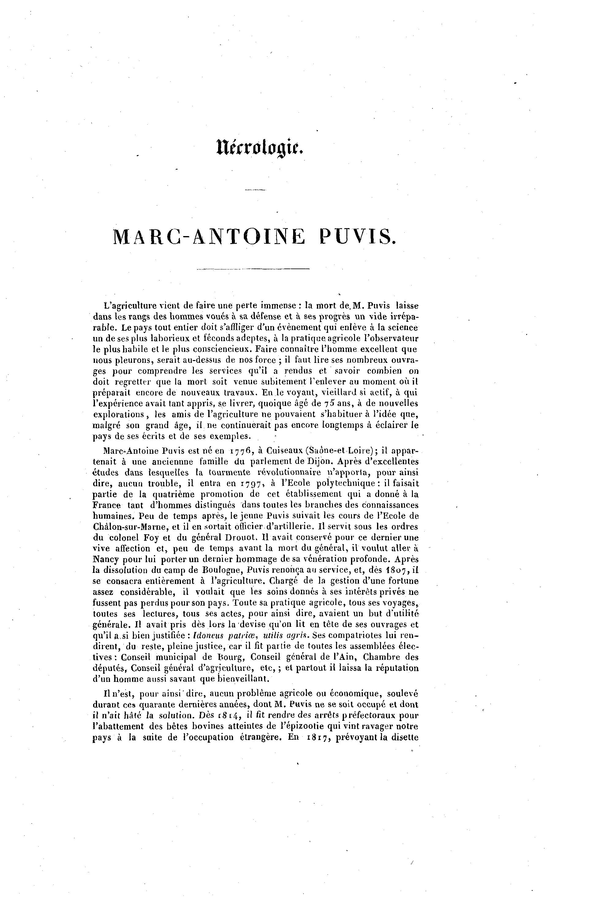 Marc-Antoine Puvis est né en 1776, à Cuiseaux (Saone-et Loire); il appar-