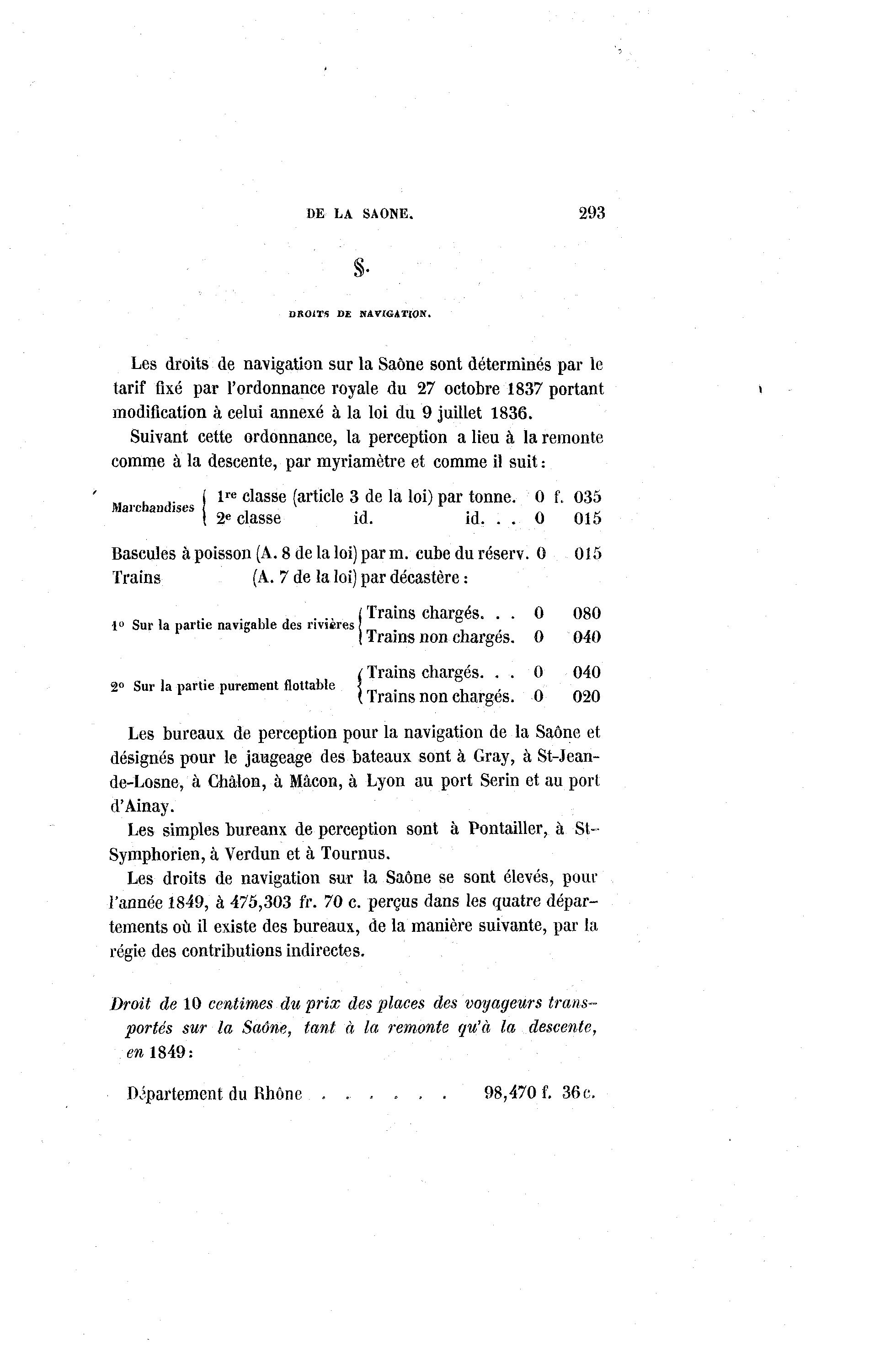 portés sur la Saône, tant à la remonte qu'à la descente,