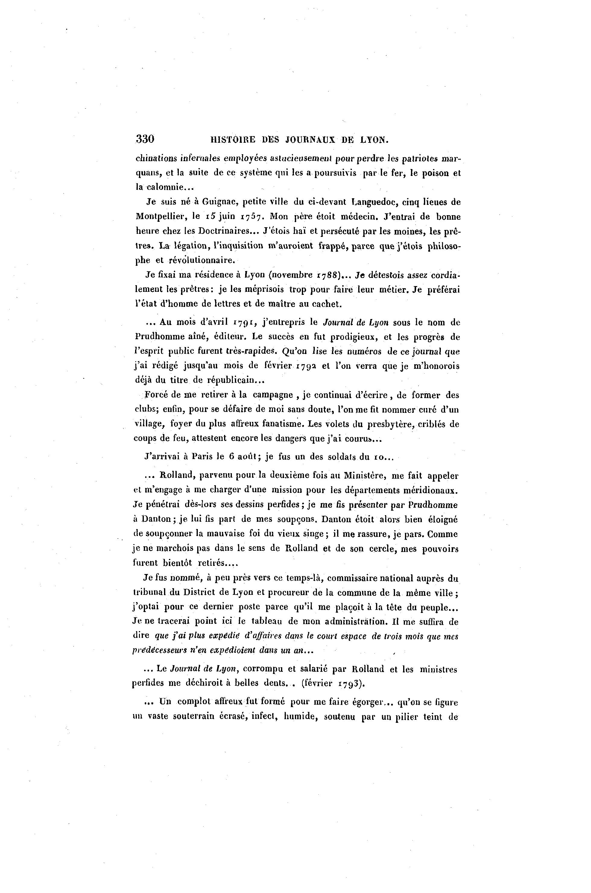 ... Au mois d'avril 1791, j'entrepris le Journal de Lyon sous le nom de