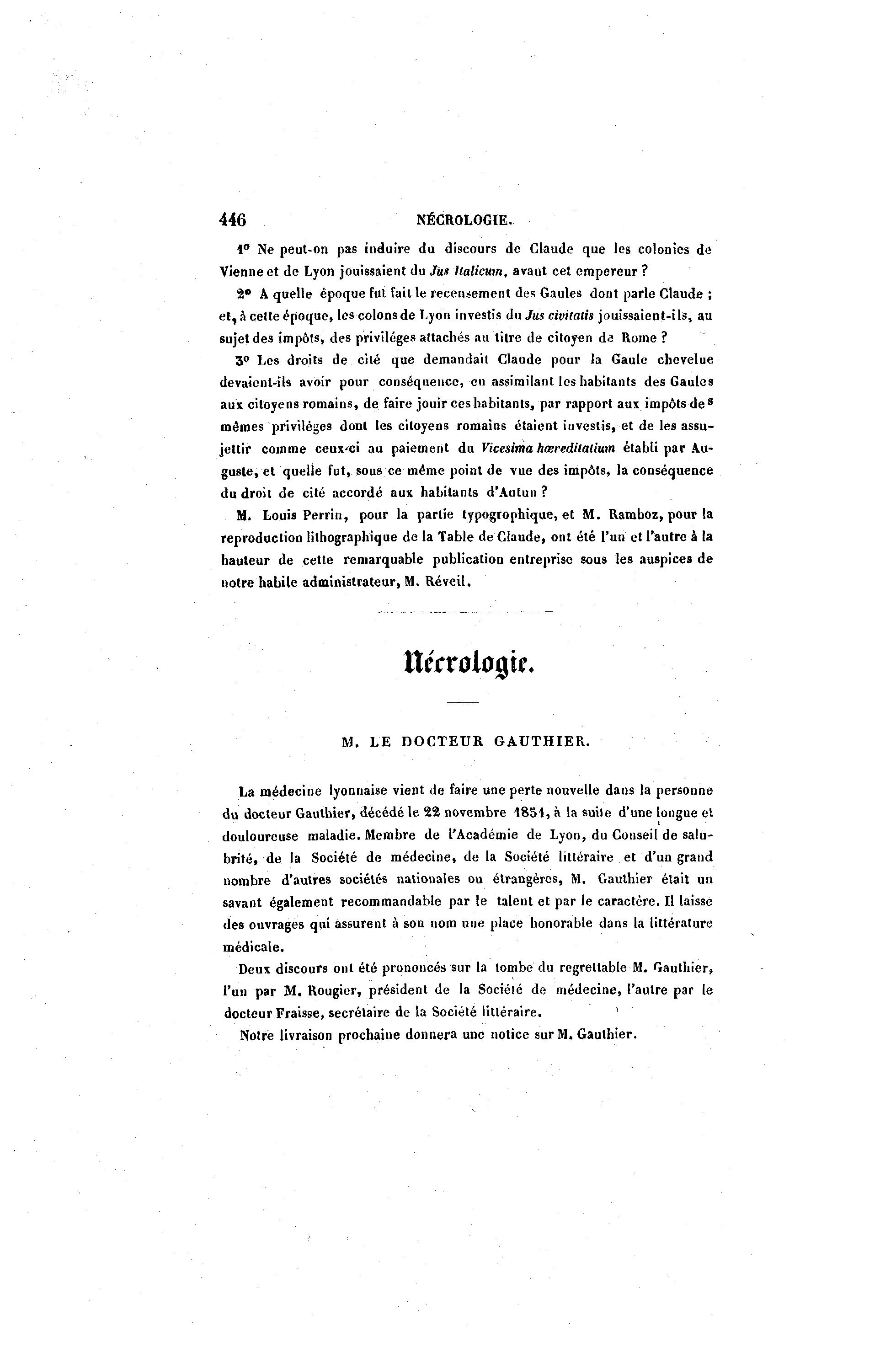 Notre livraison prochaine donnera une notice sur M. Gauthier.