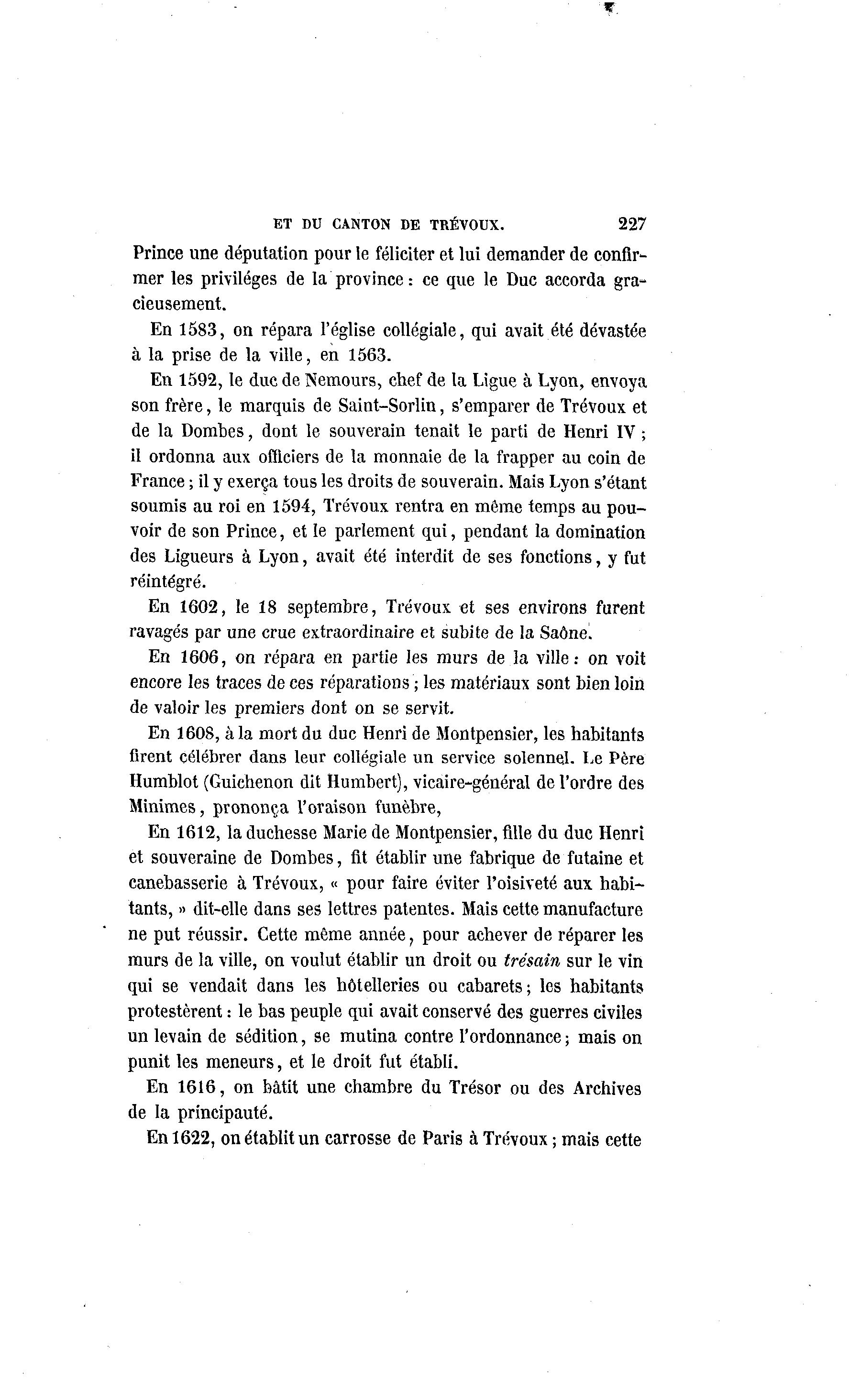 soumis au roi en 1594, Trévoux rentra en môme temps au pou-