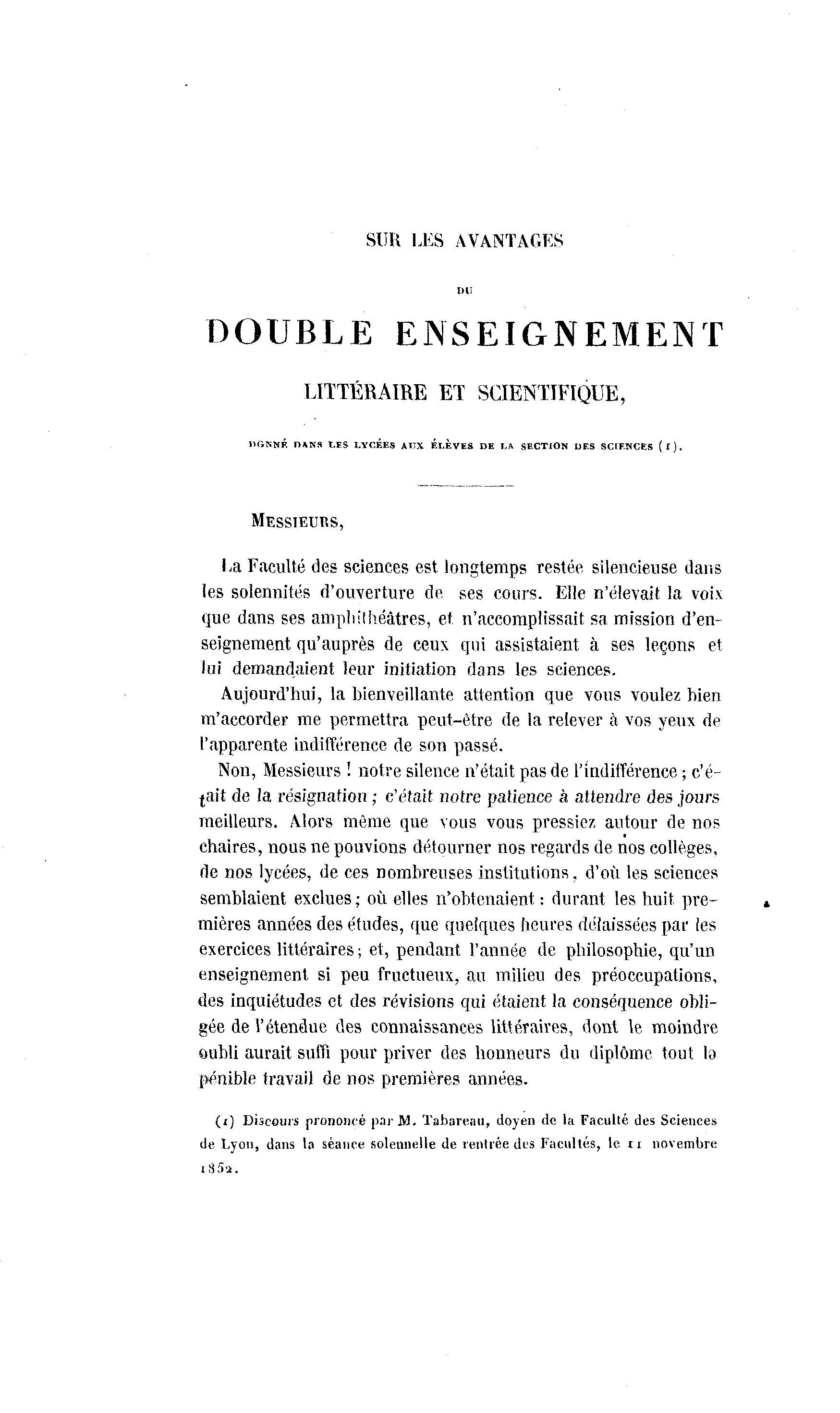 (i) Discours prononcé par M. Tabareaii, doyen de la Faculté des Sciences