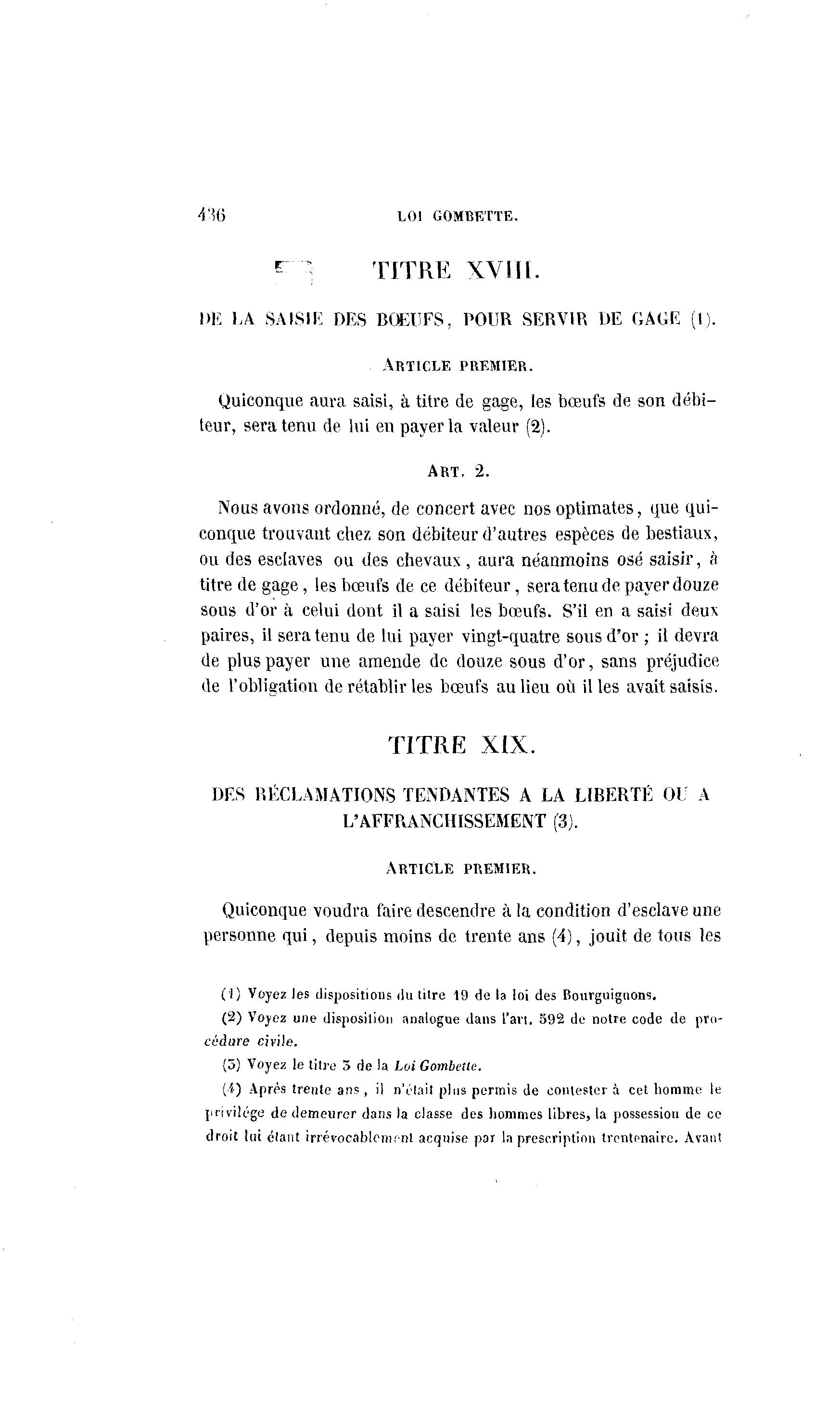 ('!) Voyez les dispositions du titre 19 de la loi des Bourguignons.