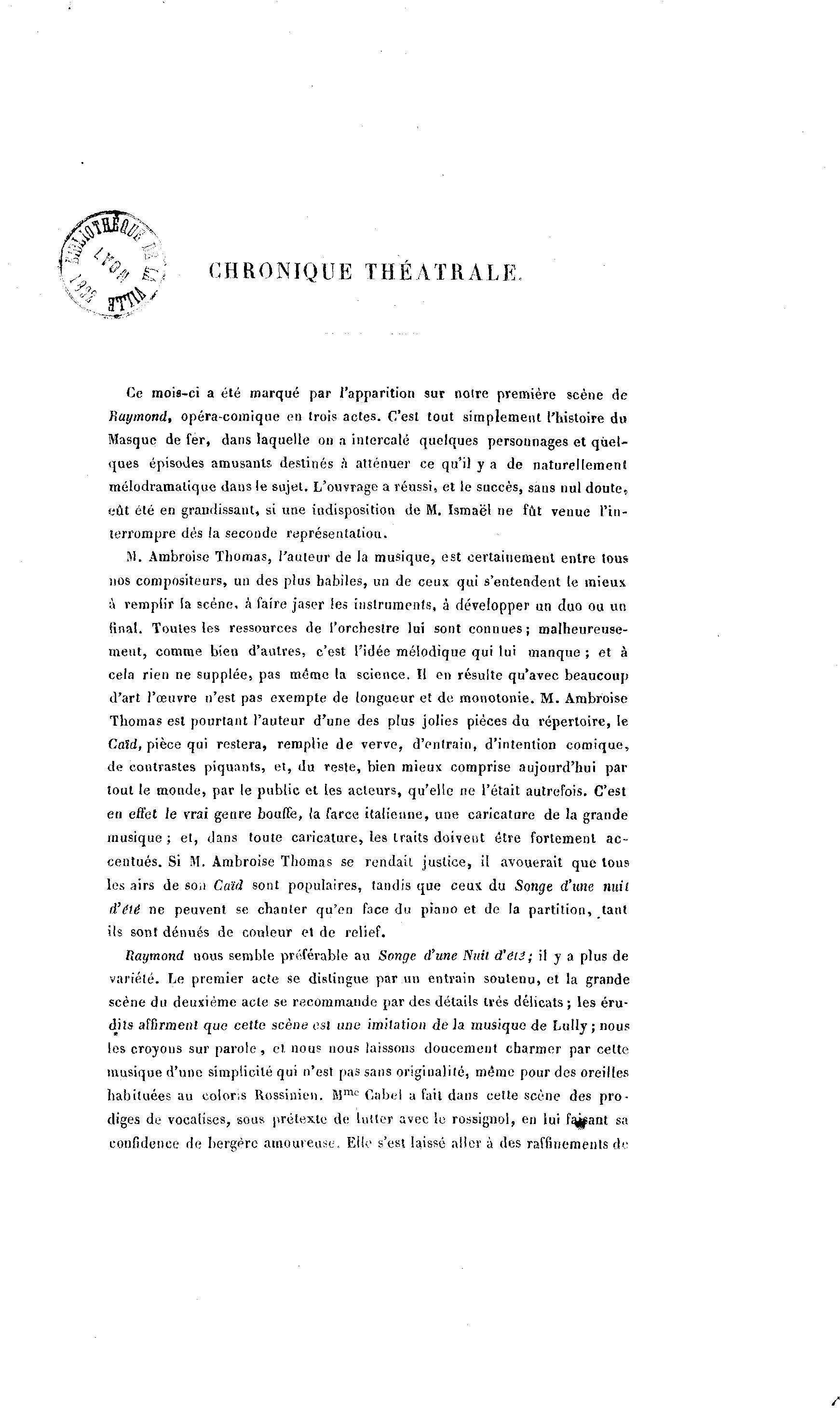 Raymond, opéra-comique en trois actes. C'est tout simplement l'histoire do
